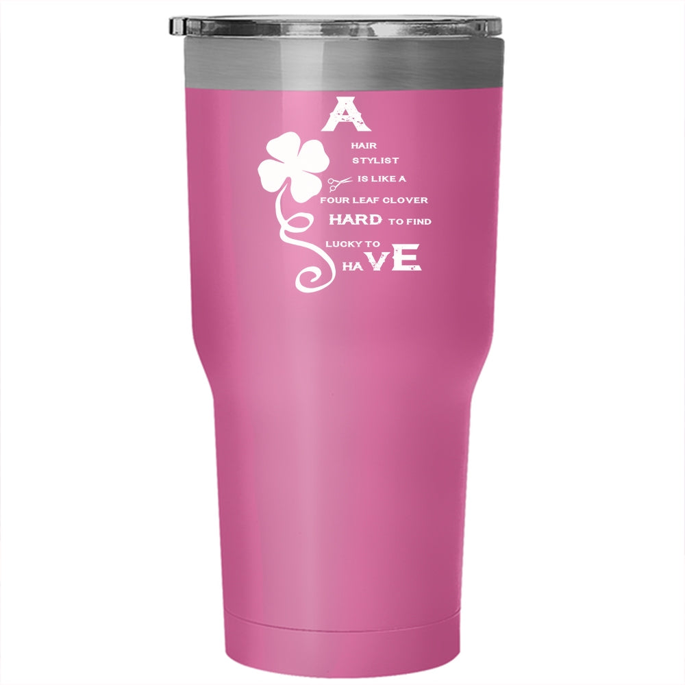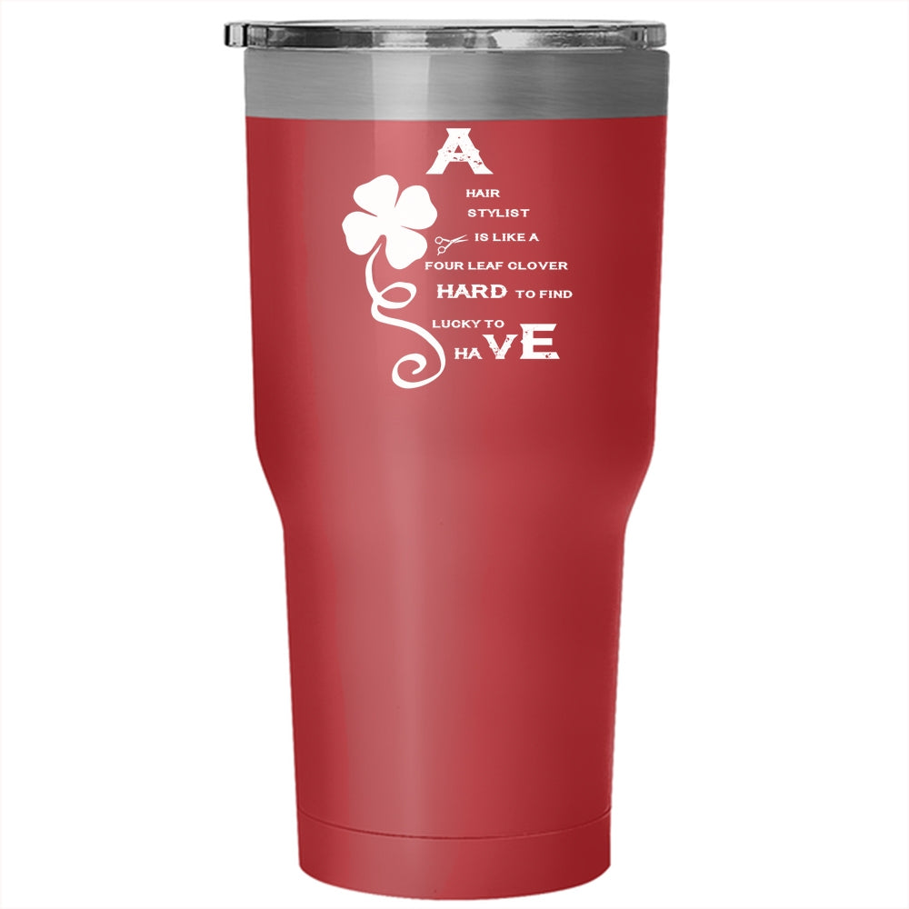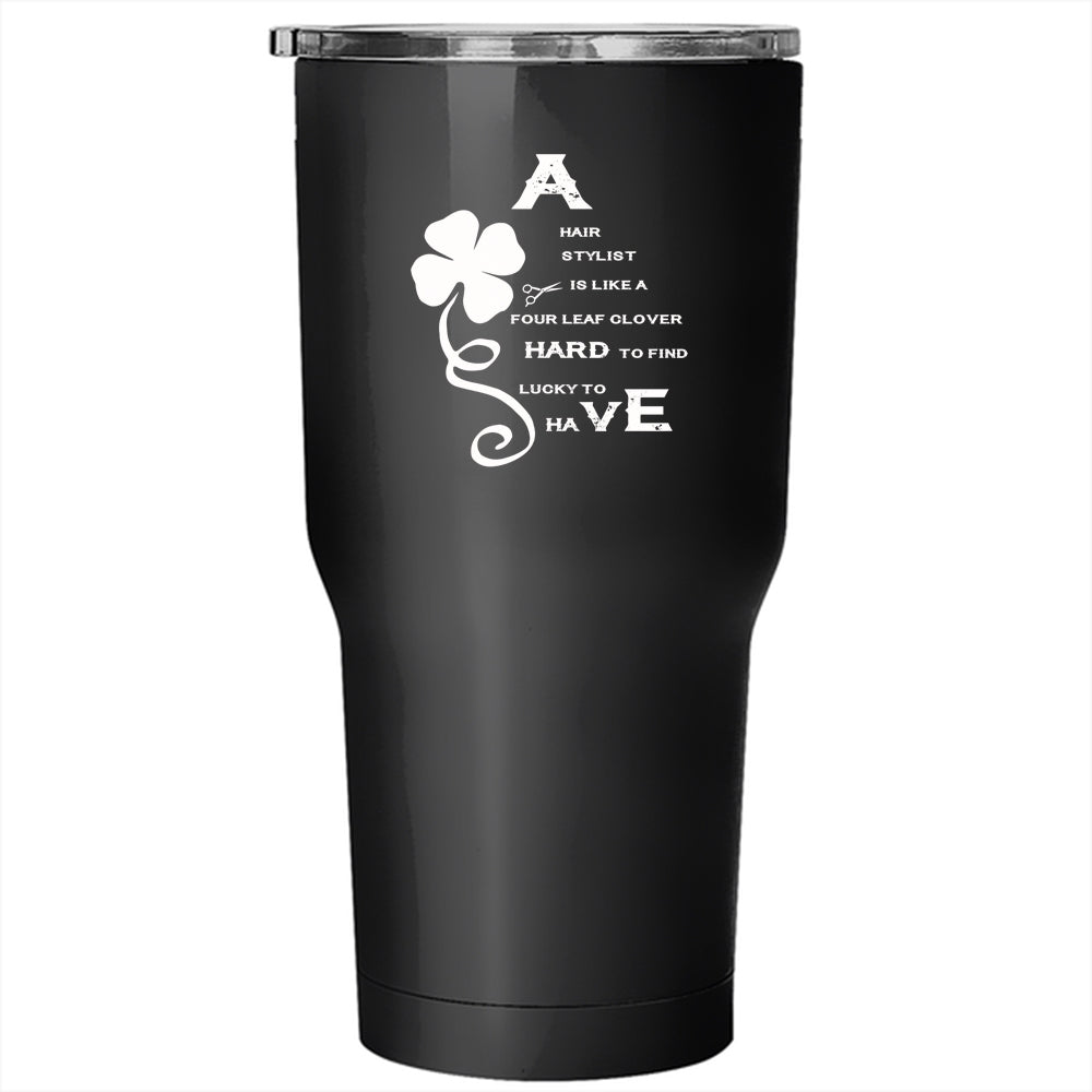 A Hair Stylist Is Like A Four Leaf Clover Tumbler 30 oz Stainless Steel, Awesome Hairstylist Travel Mug