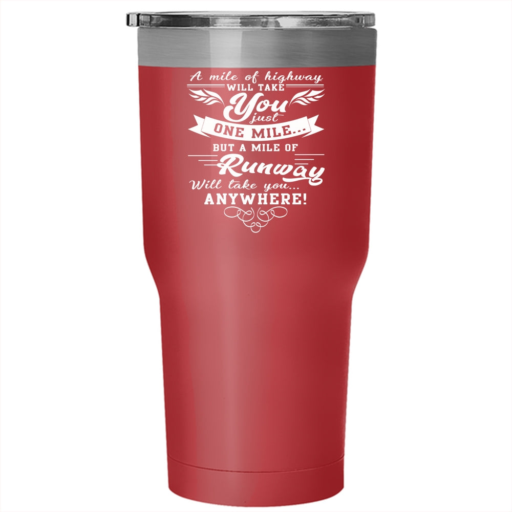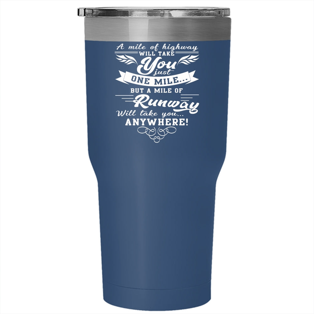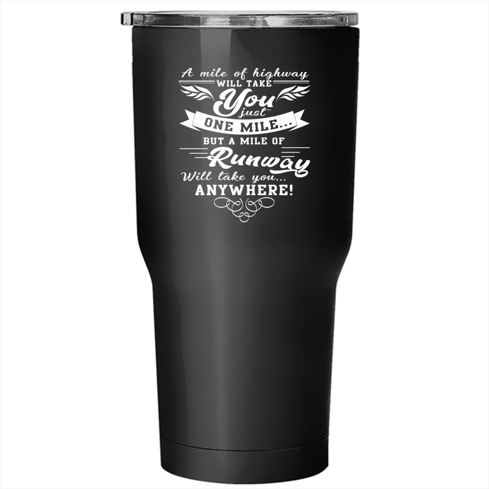 A Mile Of Highway Will Take You Tumbler 30 oz Stainless Steel, A Mile Of Runway Travel Mug