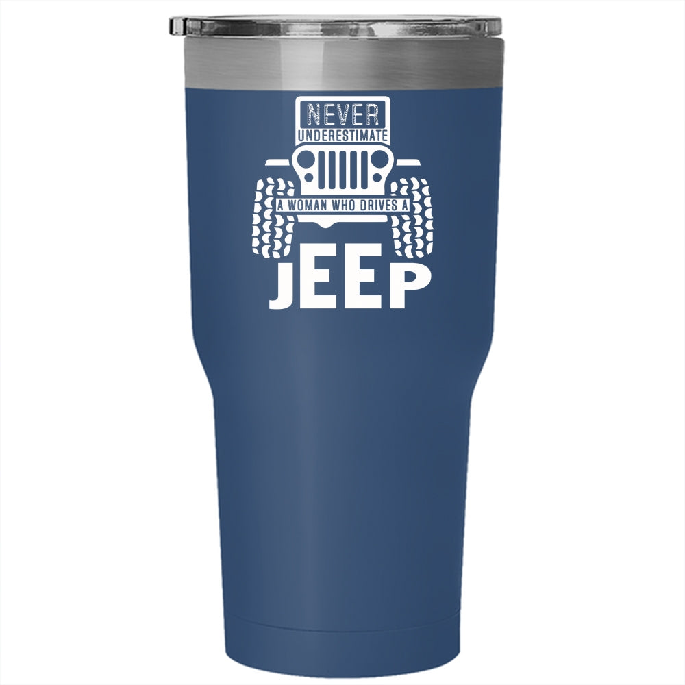A Woman Drives A Jeep Tumbler 30 oz Stainless Steel, Cool Lady Travel Mug