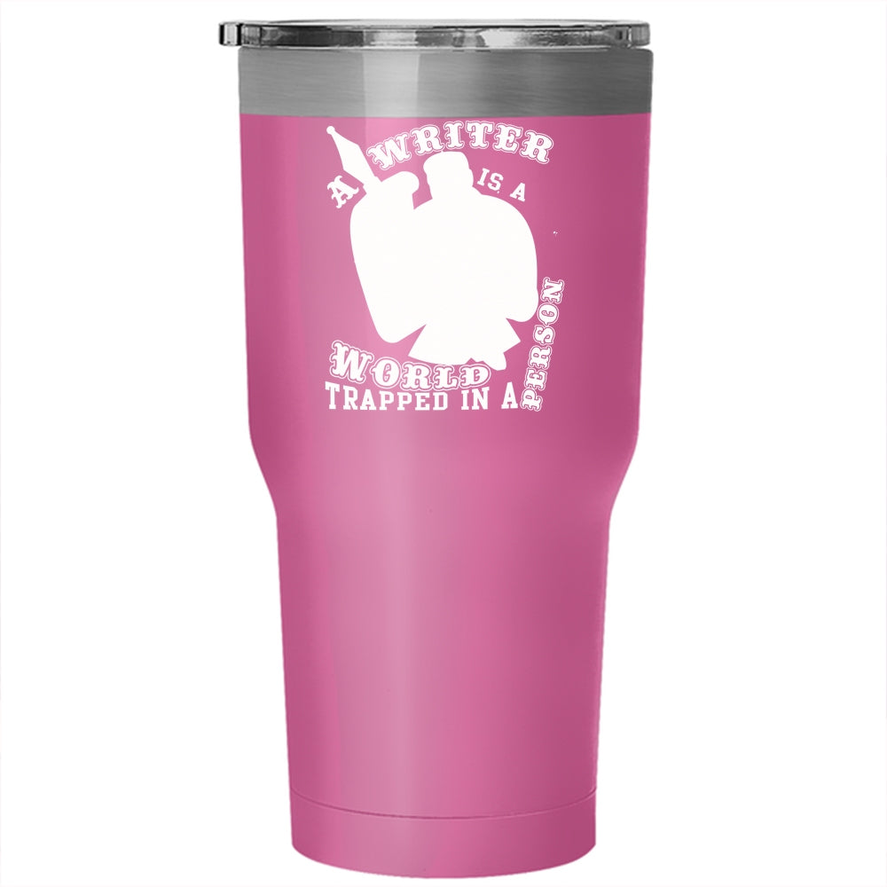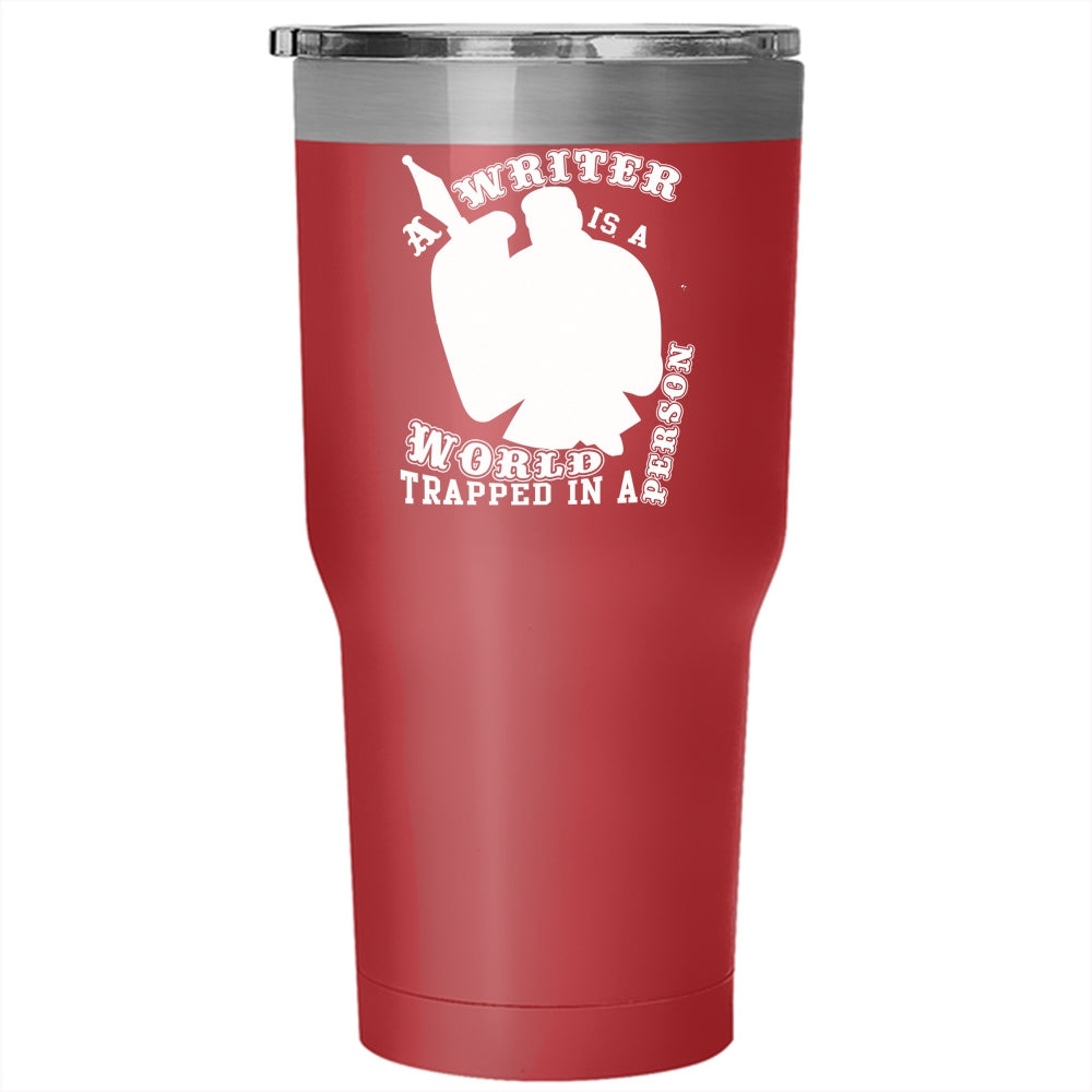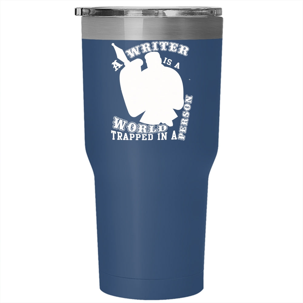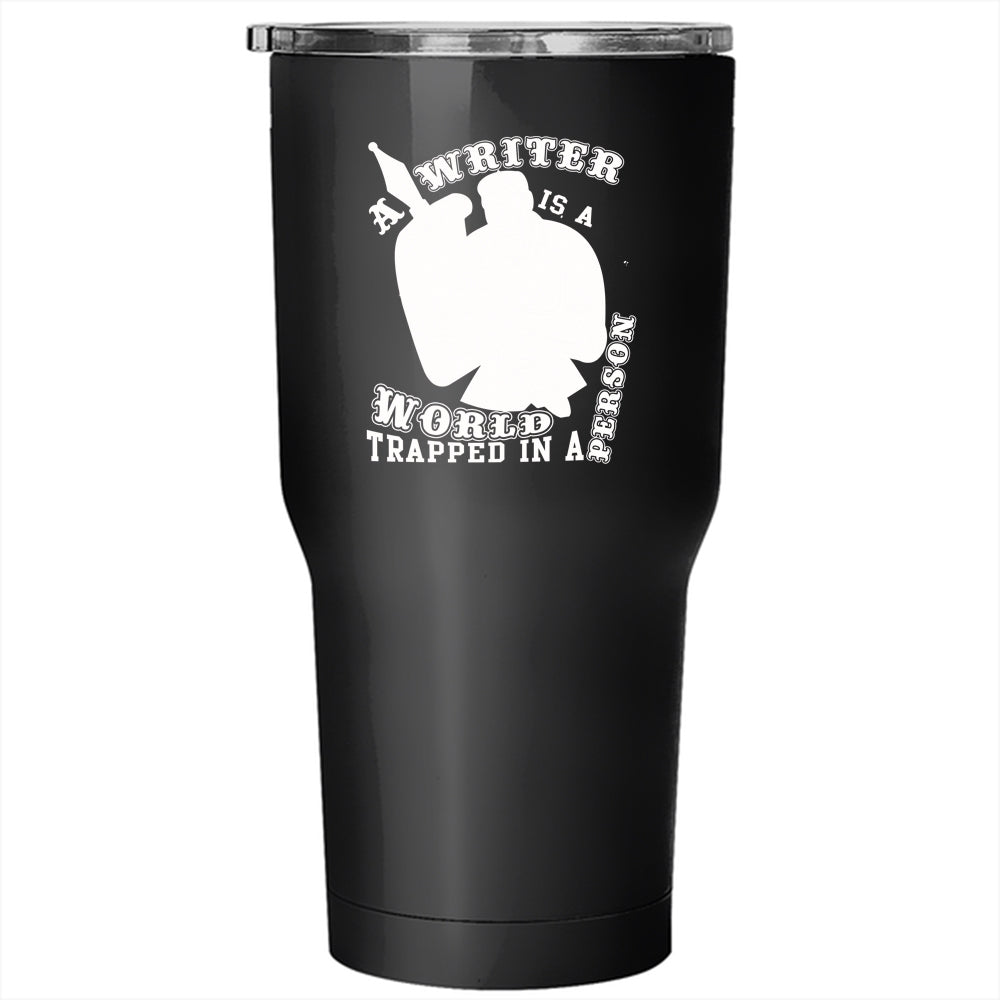 A Writer Is A World Trapped In A Person Tumbler 30 oz Stainless Steel, Cool Writer Travel Mug