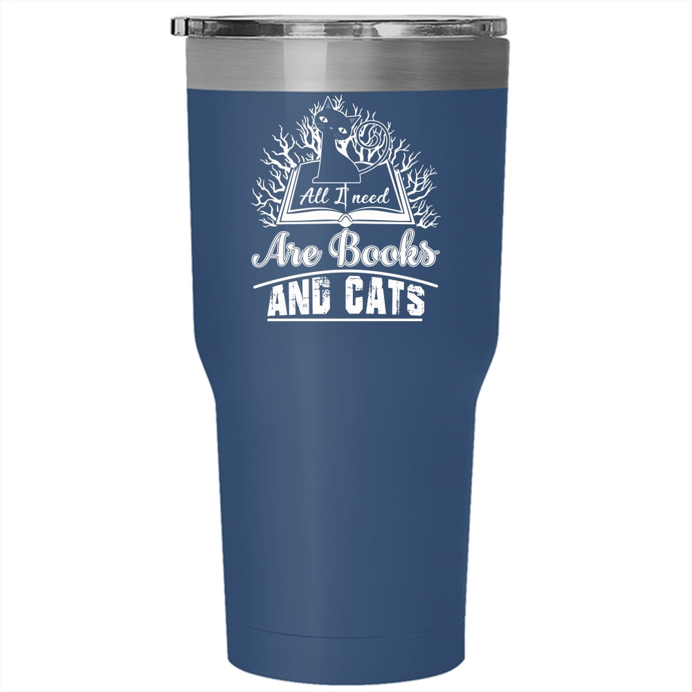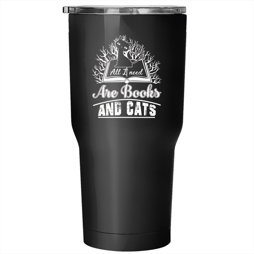 All I Need Are Books And Cats Tumbler 30 oz Stainless Steel, Gift For Book Reader Travel Mug
