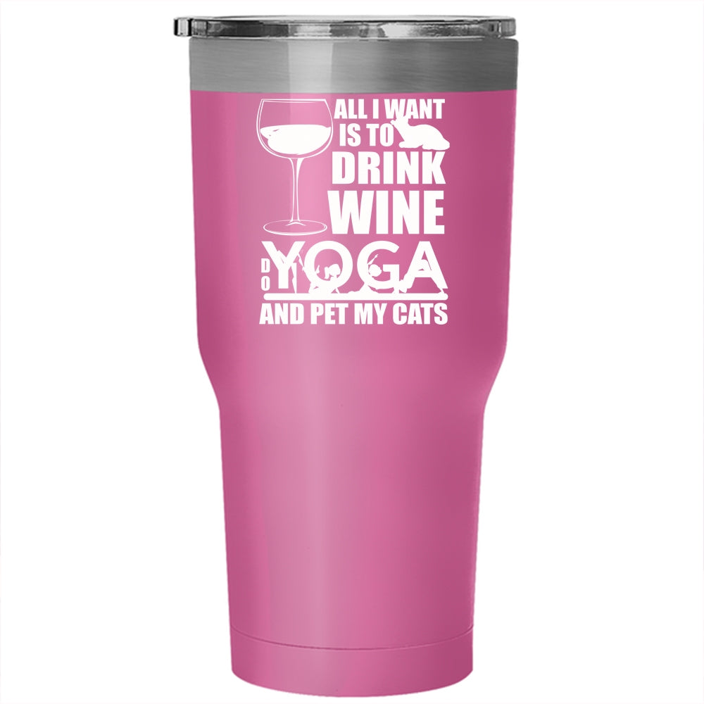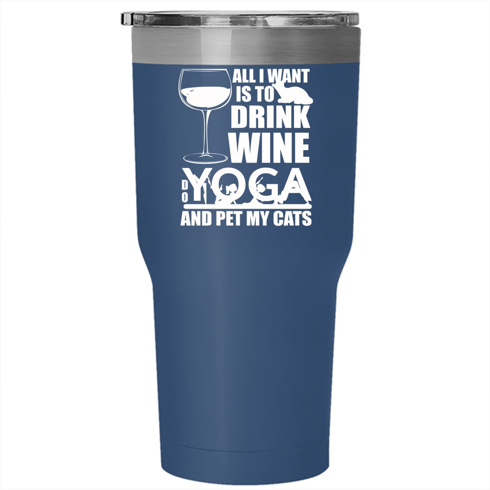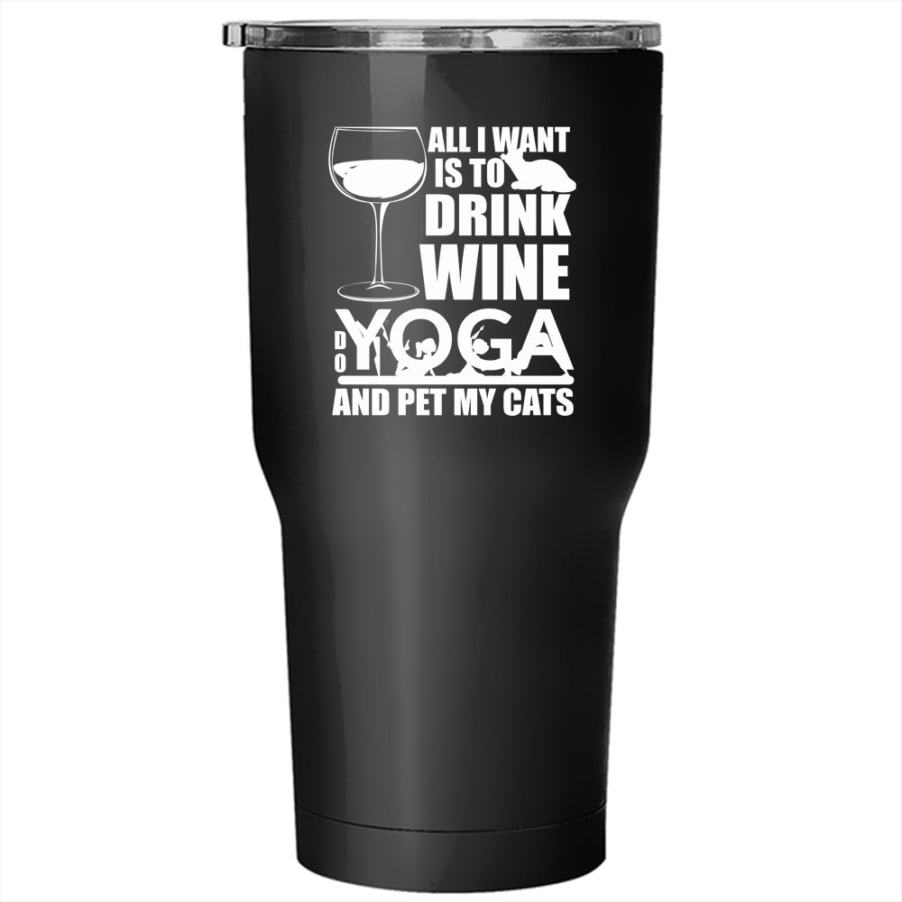 All I Want Is To Drink Wine Tumbler 30 oz Stainless Steel, Do Yoga And Pet My Cats Travel Mug