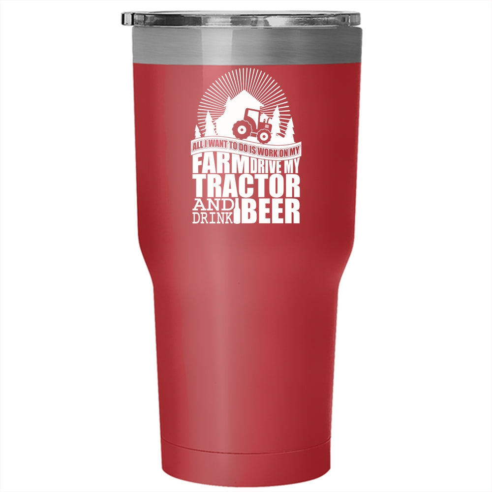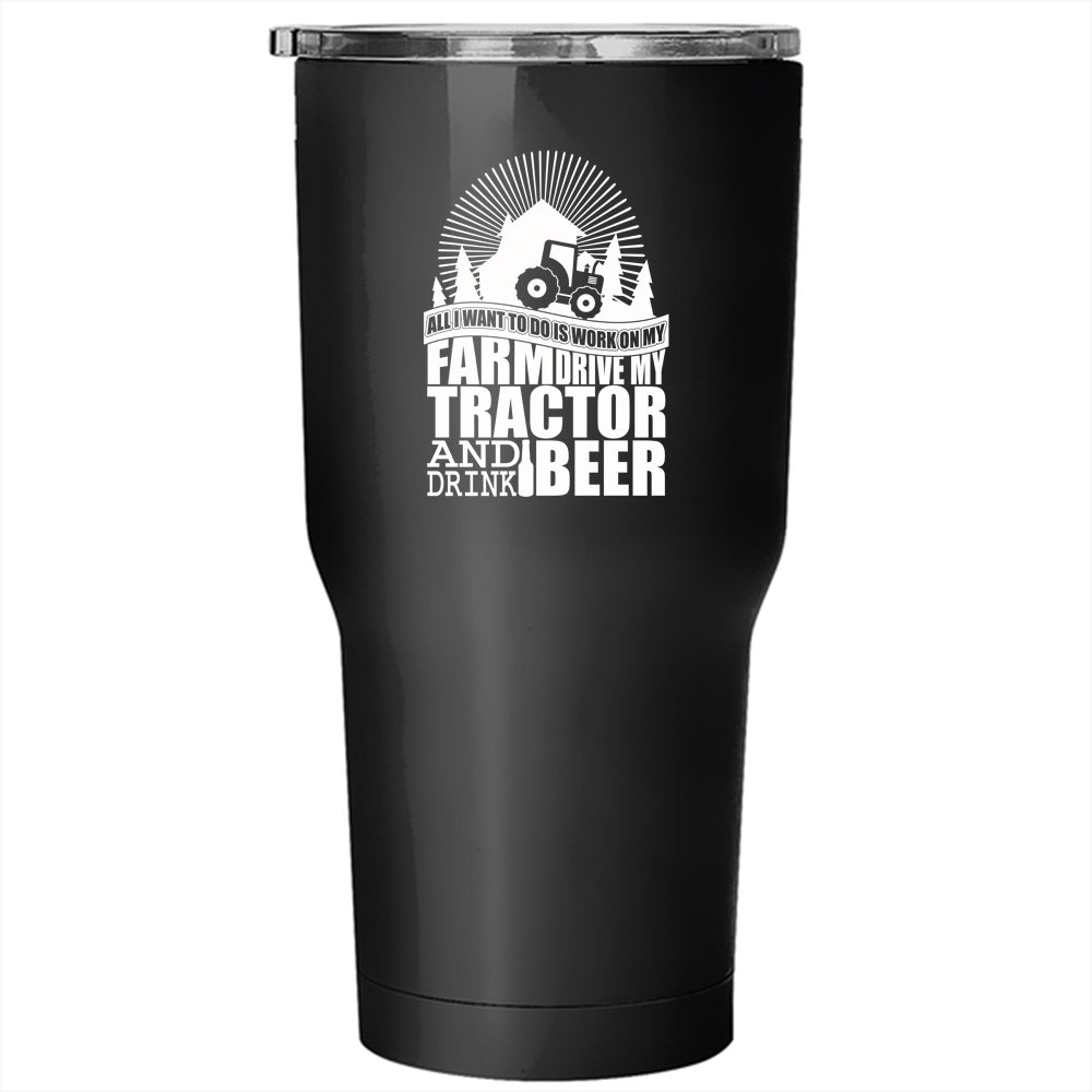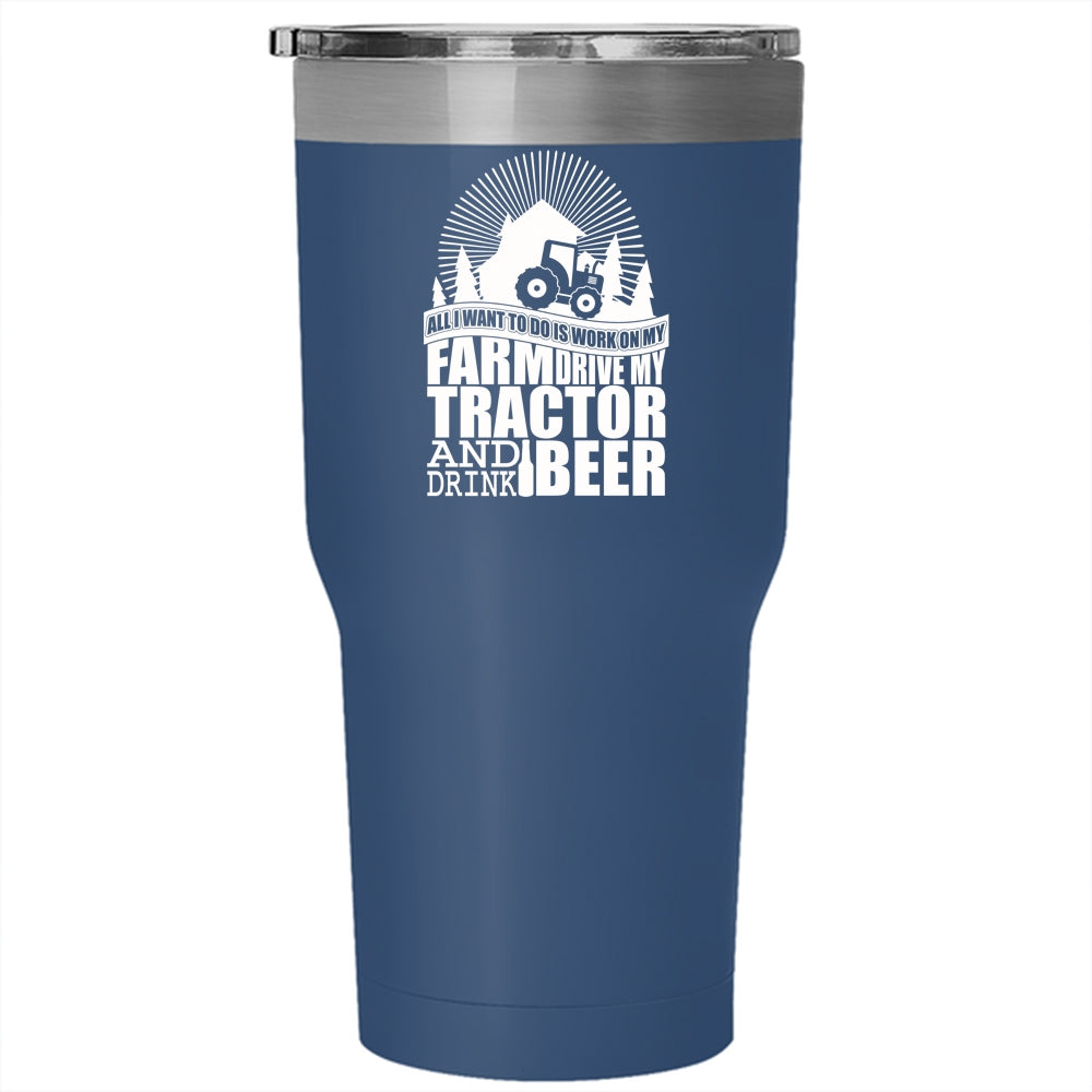 All I Want To Do Is Work On My Farm Tumbler 30 oz Stainless Steel, My Tractor And Drink Beer Travel Mug