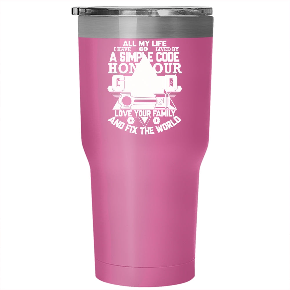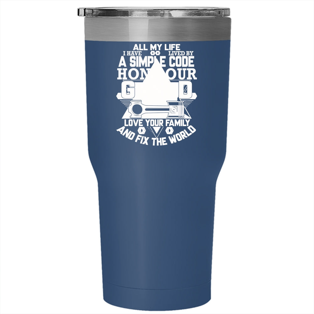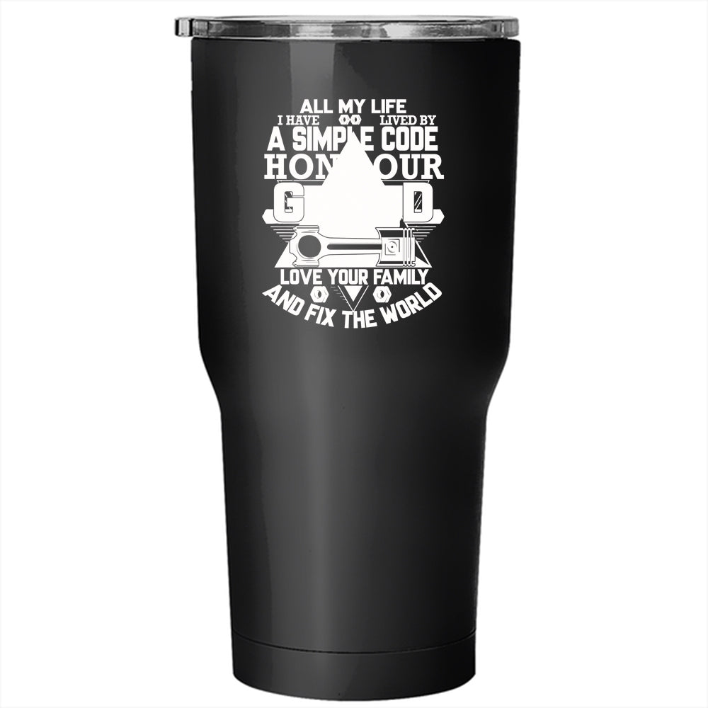 All My Life I Have Lived By A Simple Code Tumbler 30 oz Stainless Steel, Love Your Family Travel Mug