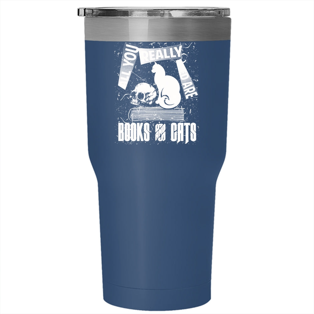 All You Really Need Are Books And Cats Tumbler 30 oz Stainless Steel, Cute Cat Travel Mug