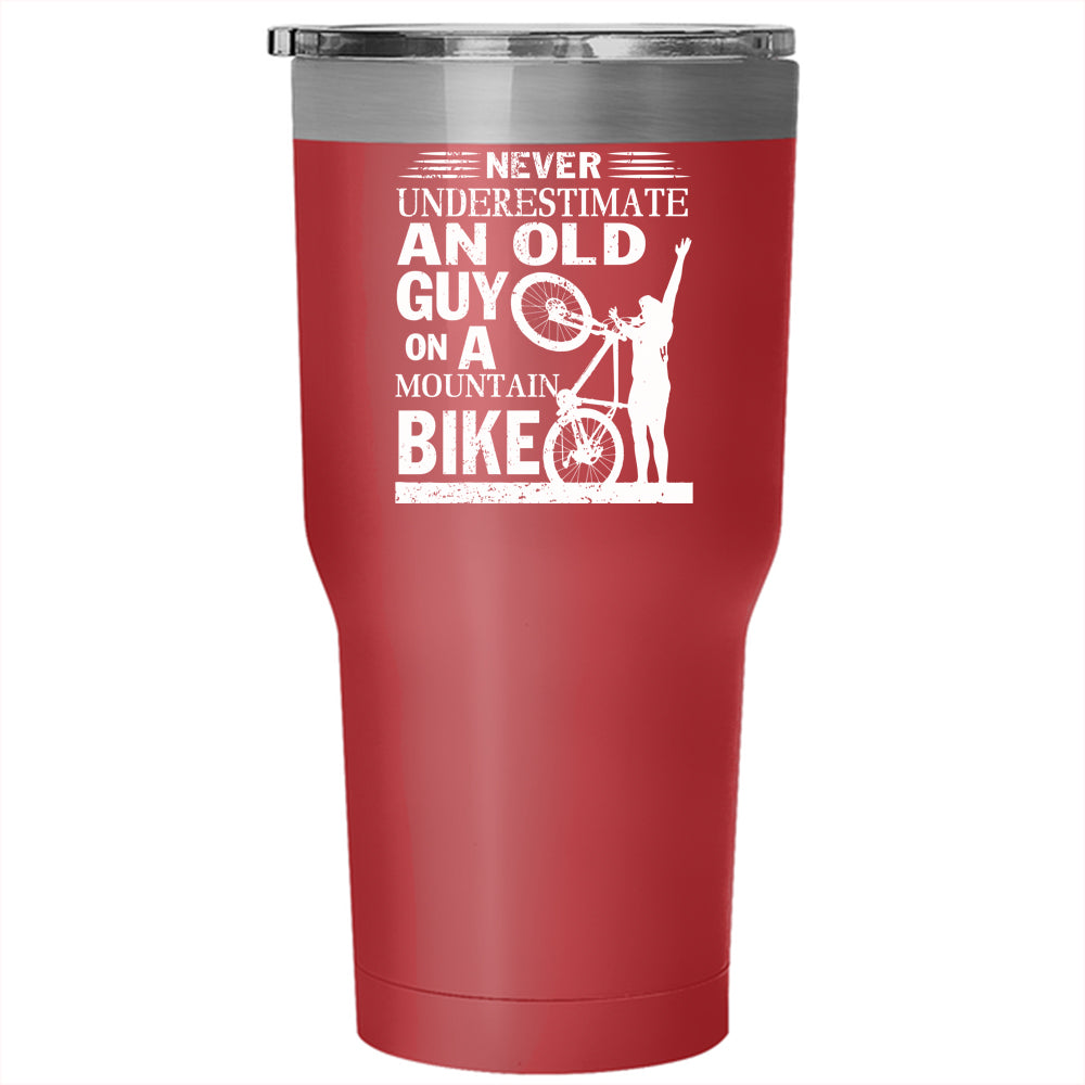 An Old Guy On A Mountain Bike Tumbler 30 oz Stainless Steel, Bike Grandpas Travel Mug
