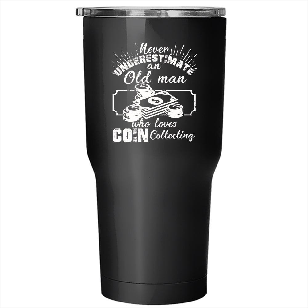 An Old Man Loves Coin Collecting Tumbler 30 oz Stainless Steel, Cute Grandpas Travel Mug