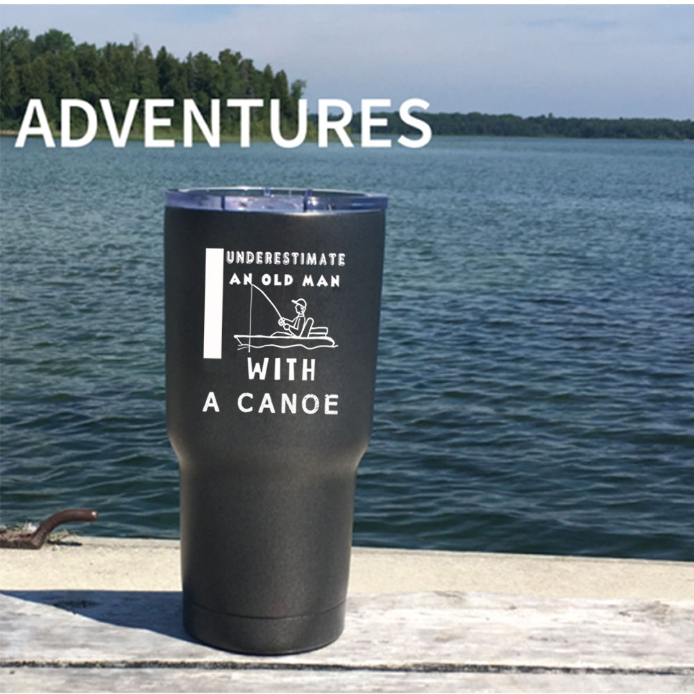 An Old Man With A Canoe Tumbler 30 oz Stainless Steel, Gift For Grandpas Travel Mug