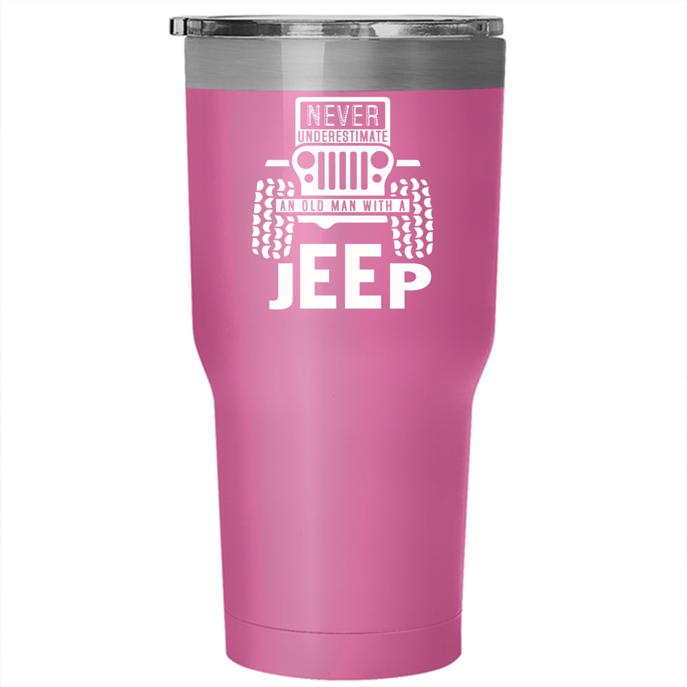 An Old Man With A Jeep Tumbler 30 oz Stainless Steel, Cool Grandpas Travel Mug