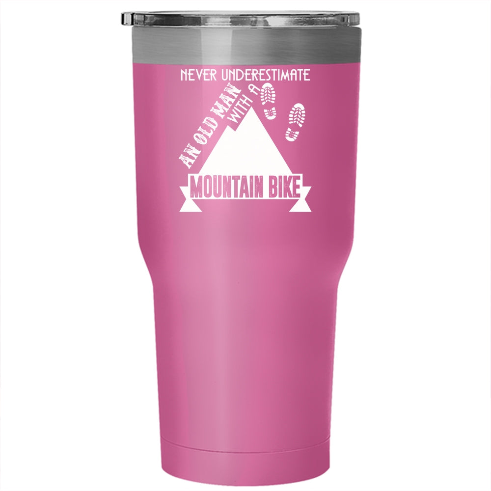 An Old Man With A Mountain Bike Tumbler 30 oz Stainless Steel, Cute Grandpa Travel Mug