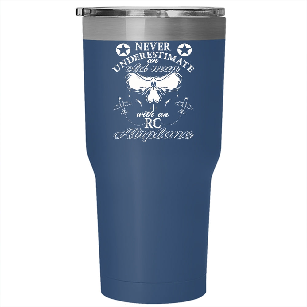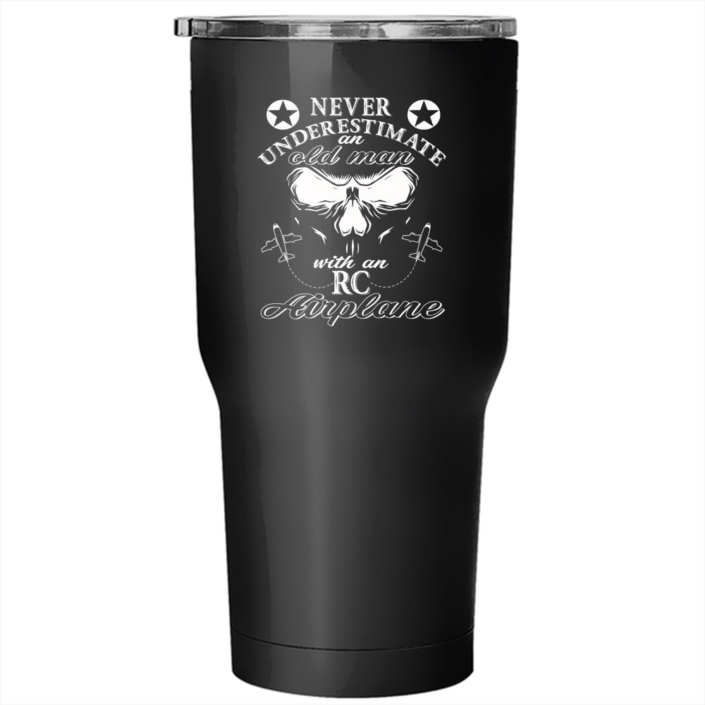 An Old Man With An RC Airplane Tumbler 30 oz Stainless Steel, Cool Grandpas Travel Mug