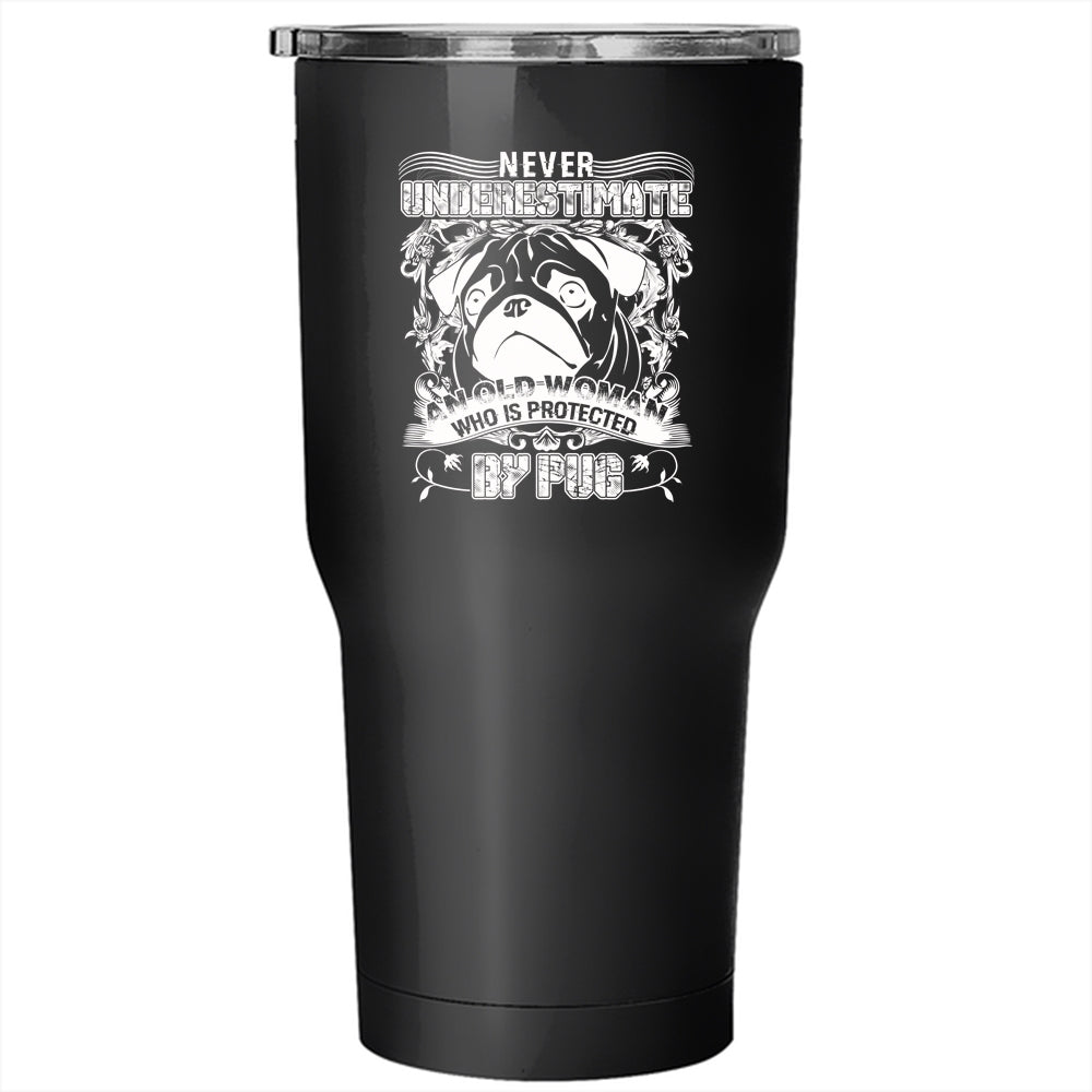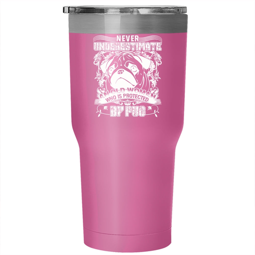 An Old Woman Is Protected By Pug Tumbler 30 oz Stainless Steel, Cool Pug Owner Travel Mug
