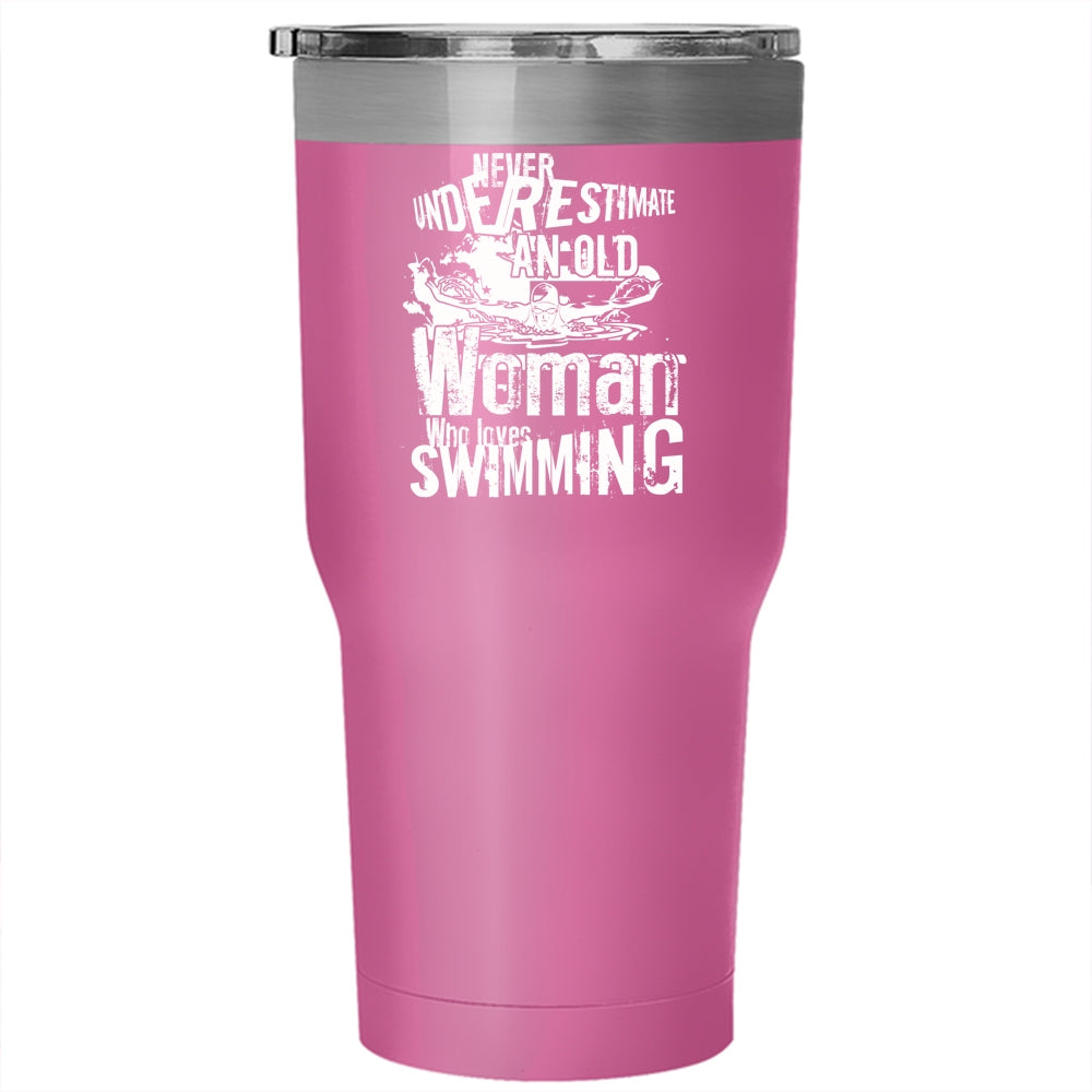 An Old Woman Loves Swimming Tumbler 30 oz Stainless Steel, Cool Grandma Travel Mug