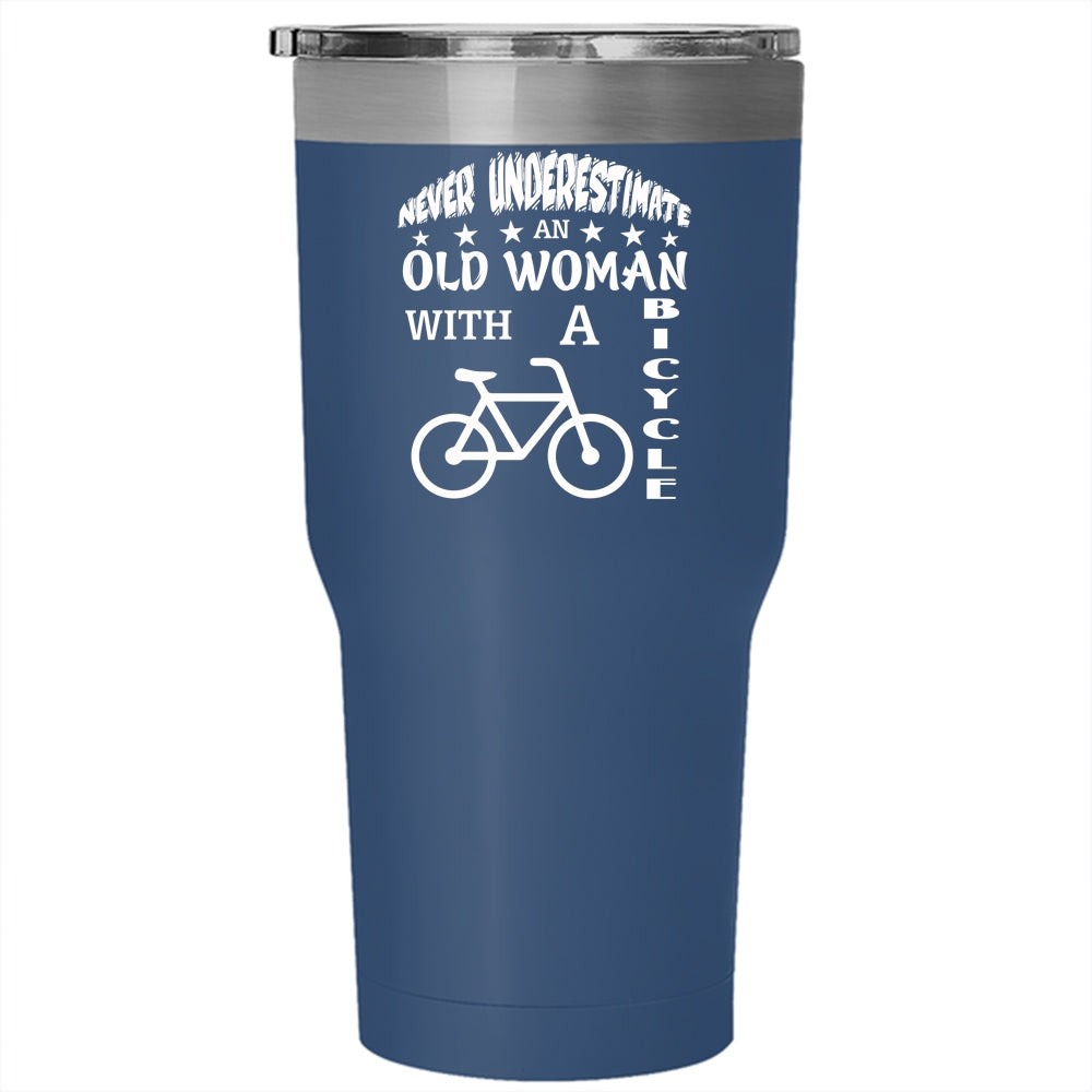 An Old Woman With A Bicycle Tumbler 30 oz Stainless Steel, Awesome Grandmother Travel Mug