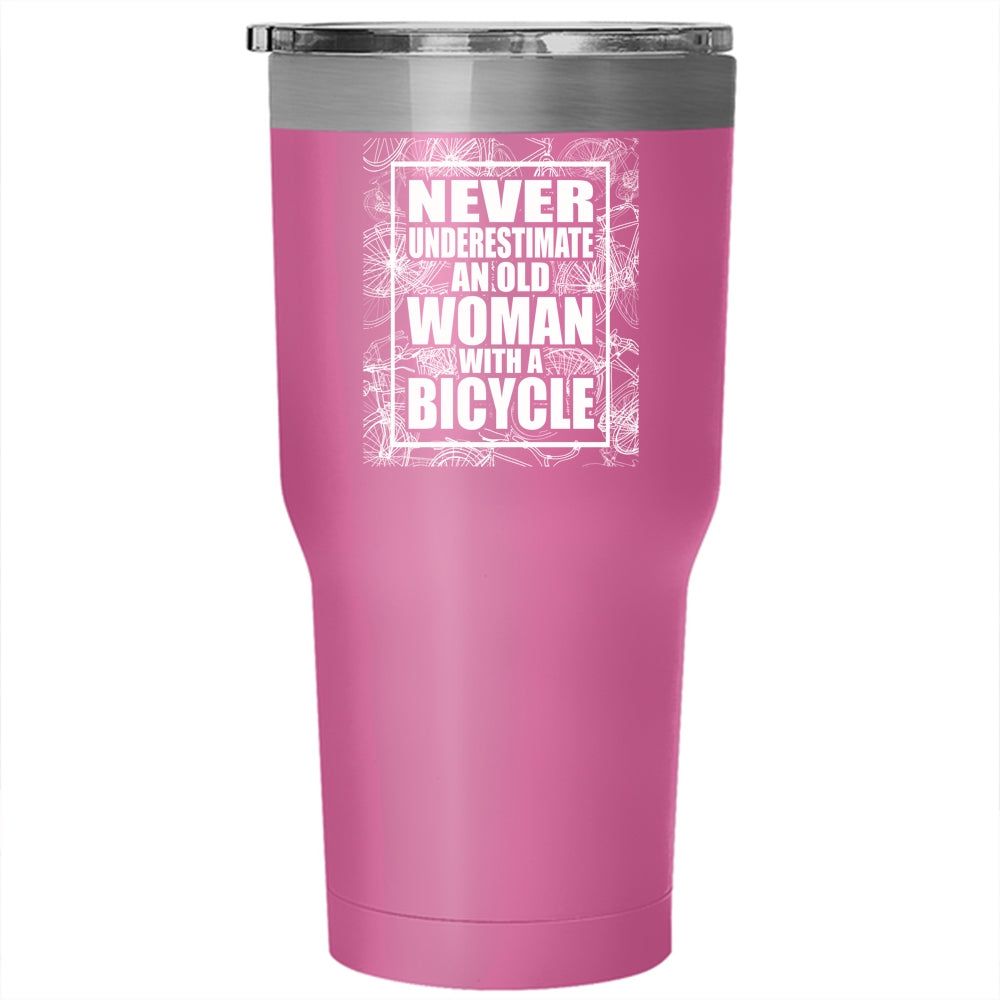 An Old Woman With A Bicycle Tumbler 30 oz Stainless Steel, Funny Grandmas Travel Mug