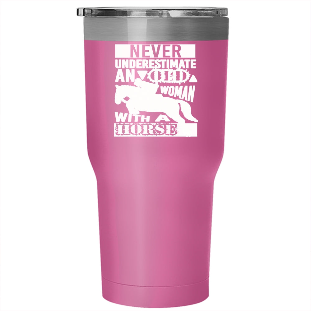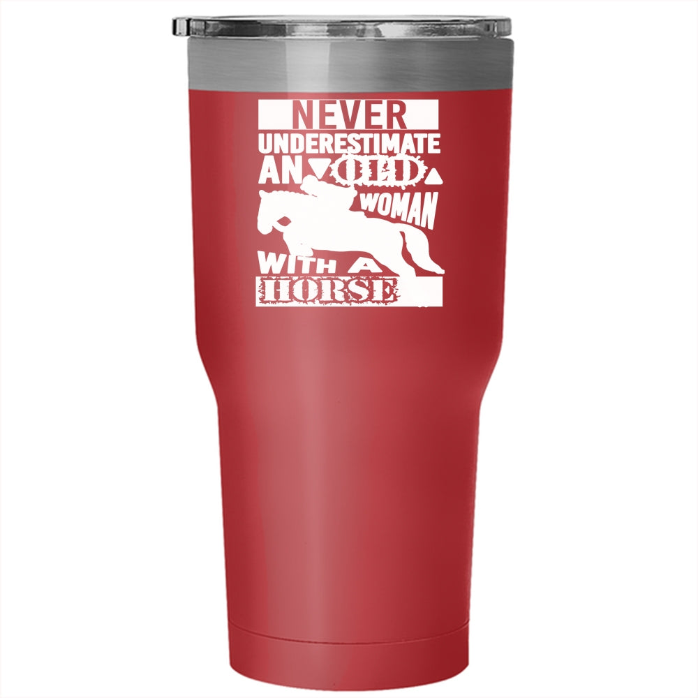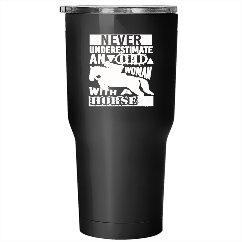 An Old Woman With A Horse Tumbler 30 oz Stainless Steel, Awesome Grandmas Travel Mug