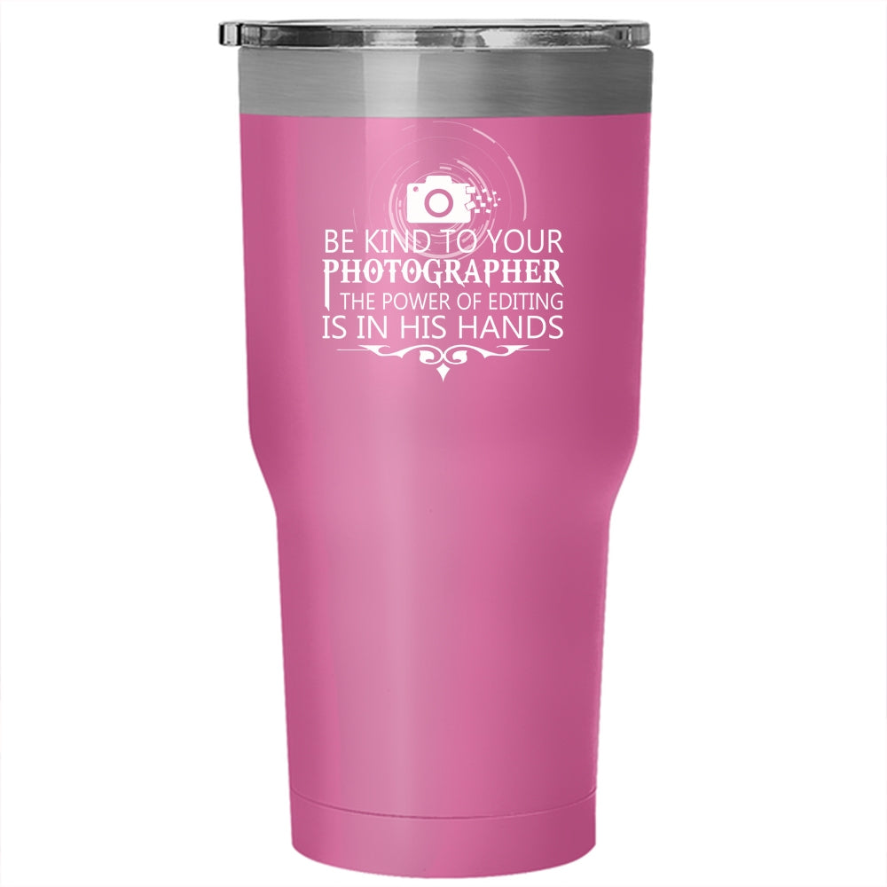 Be Kind To Your Photographer Tumbler 30 oz Stainless Steel, Cool Photographers Travel Mug