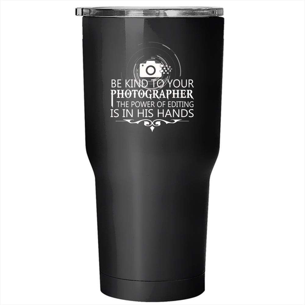 Be Kind To Your Photographer Tumbler 30 oz Stainless Steel, Funny Photography Travel Mug