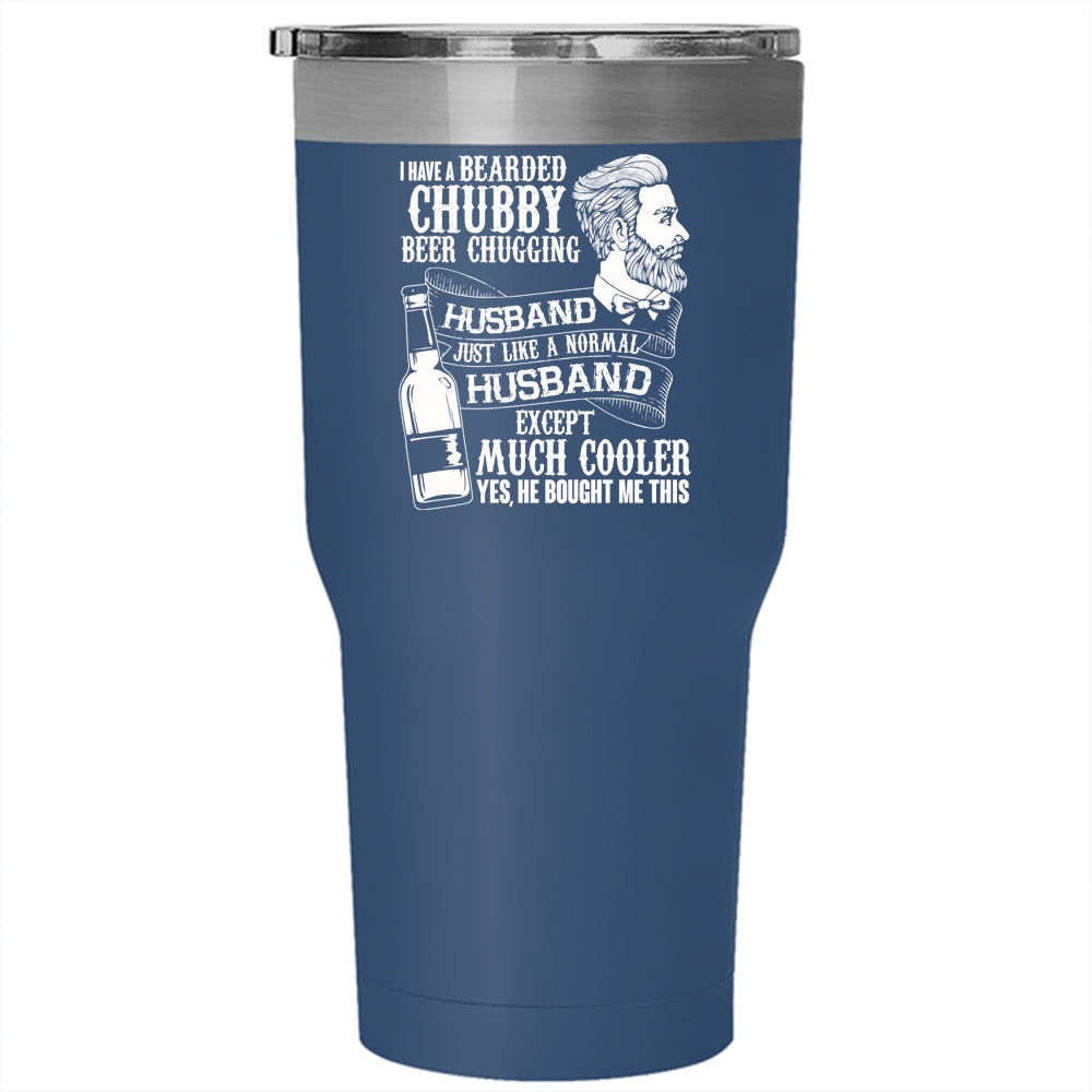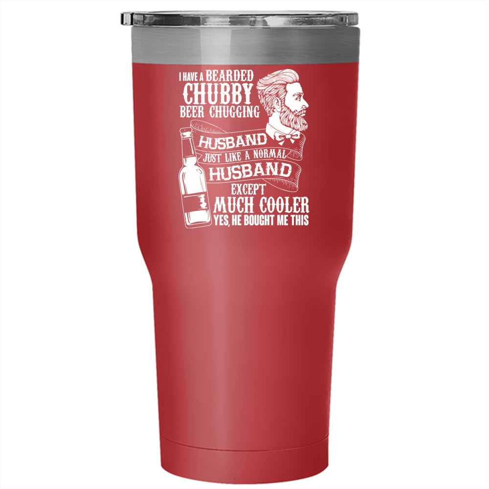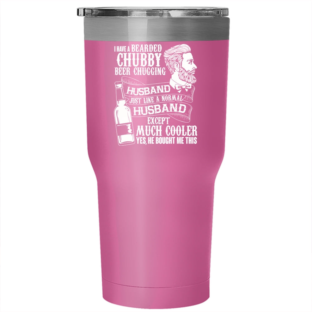 Bearded Chubby Beer Chugging Husband Tumbler 30 oz Stainless Steel, Cute Wife Travel Mug