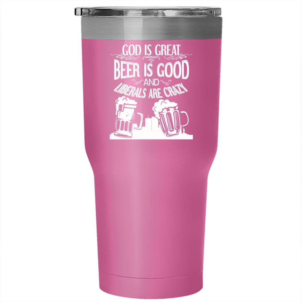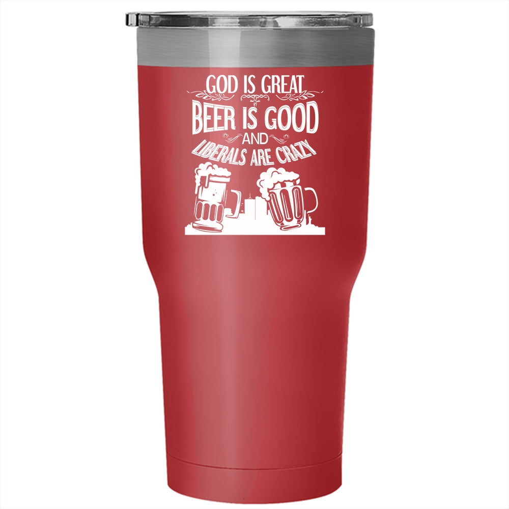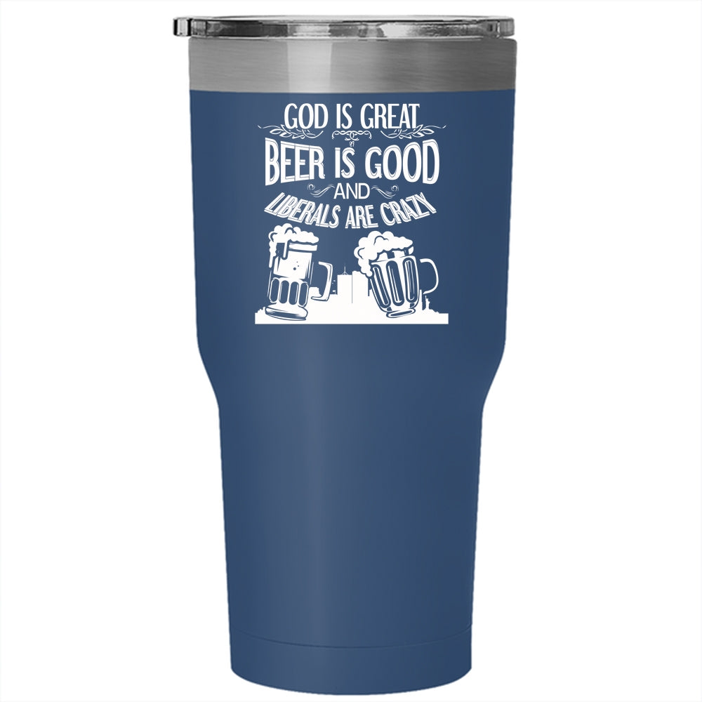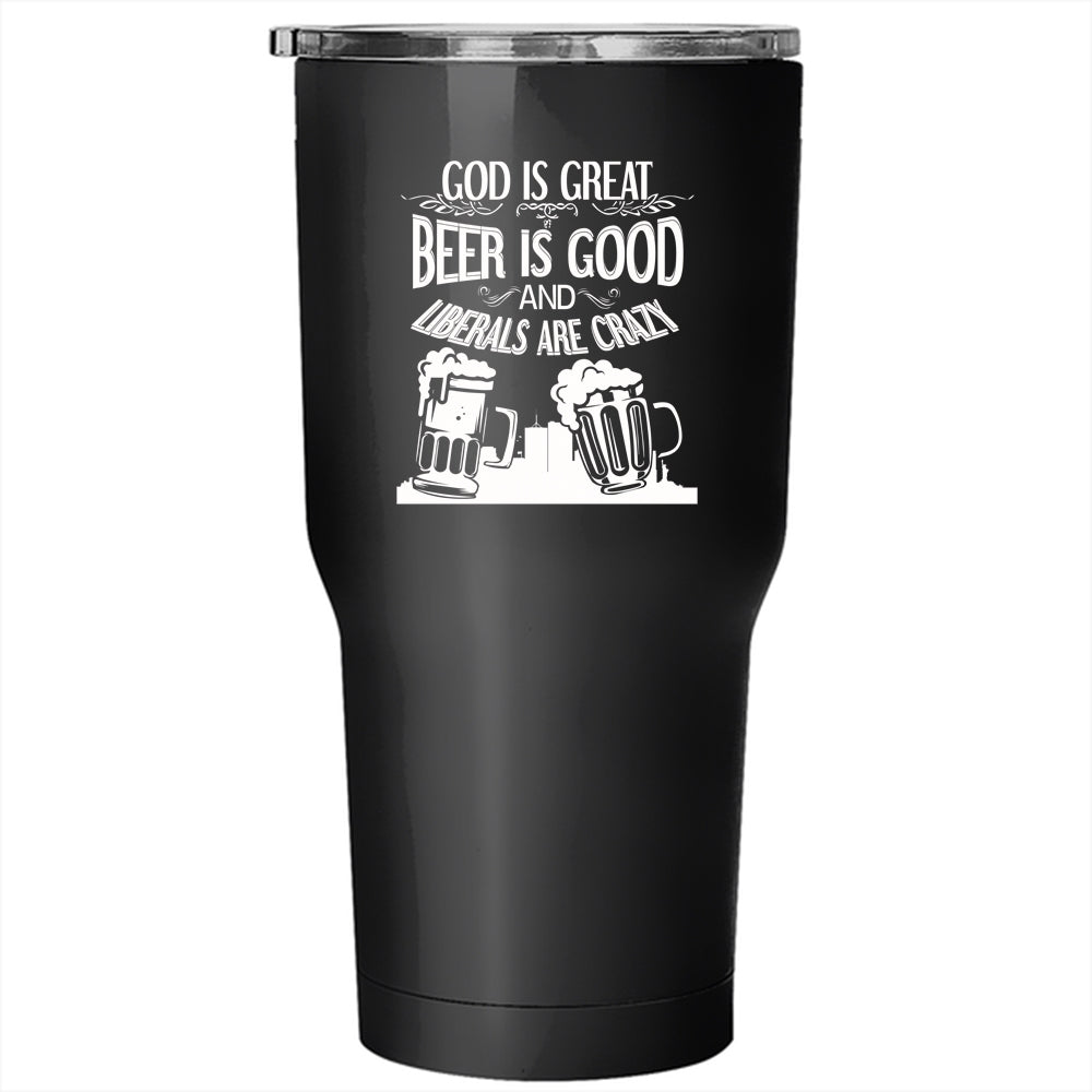 Beer Is Good Tumbler 30 oz Stainless Steel, Liberals Are Crazy Travel Mug