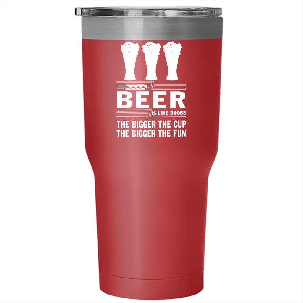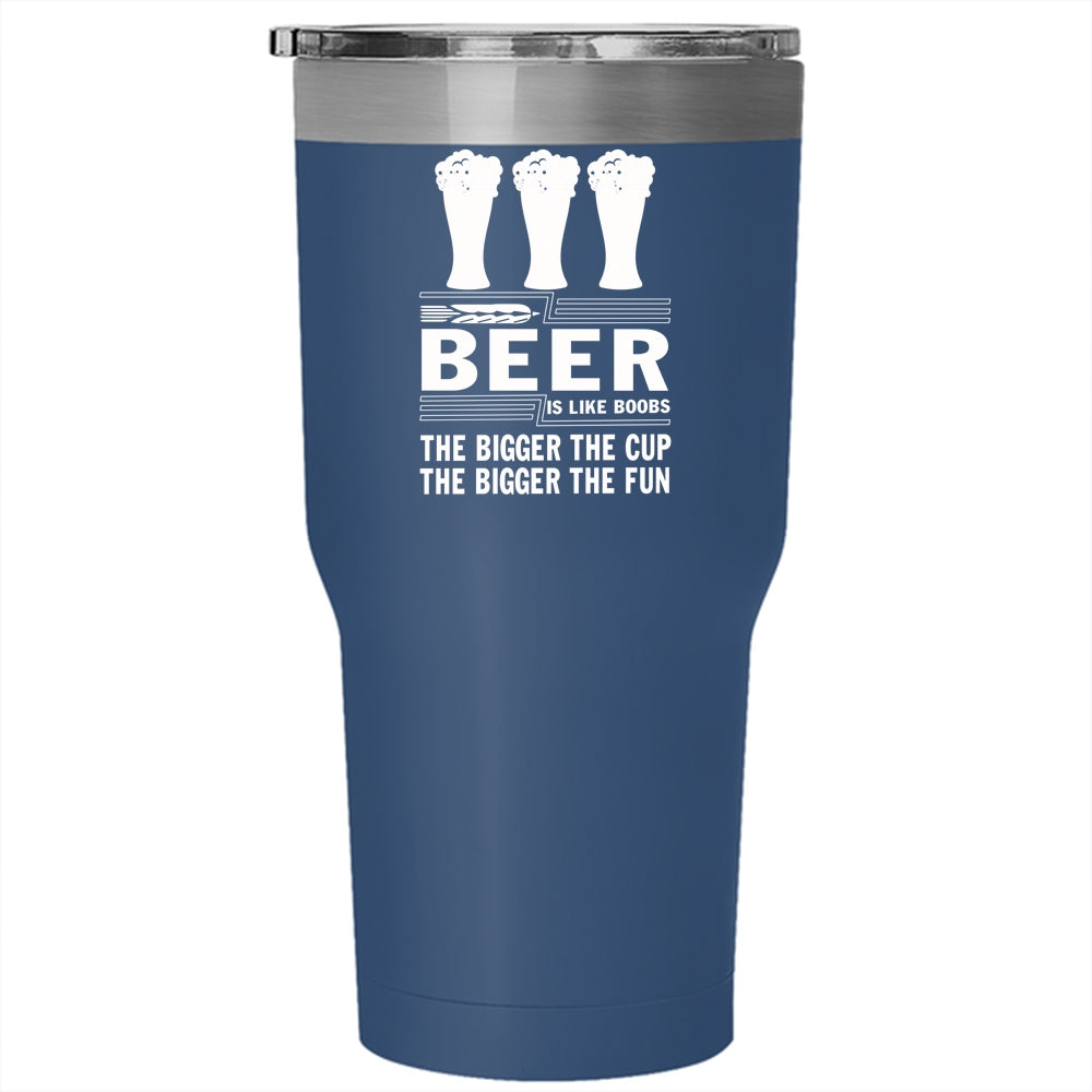 Beer Is Like Boobs Tumbler 30 oz Stainless Steel, The Bigger The Fun Travel Mug
