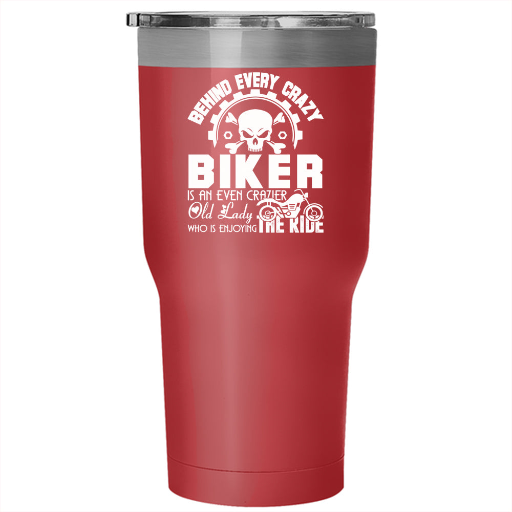 Behind Every Crazy Biker Tumbler 30 oz Stainless Steel, Crazier Old Lady Travel Mug