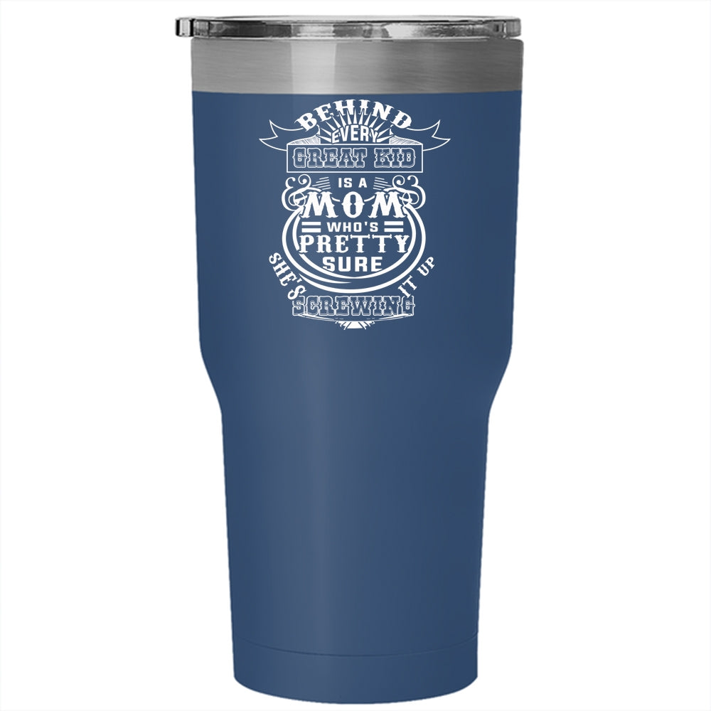 Behind Every Great Kid Is A Mom Tumbler 30 oz Stainless Steel, Cool Mommy Travel Mug