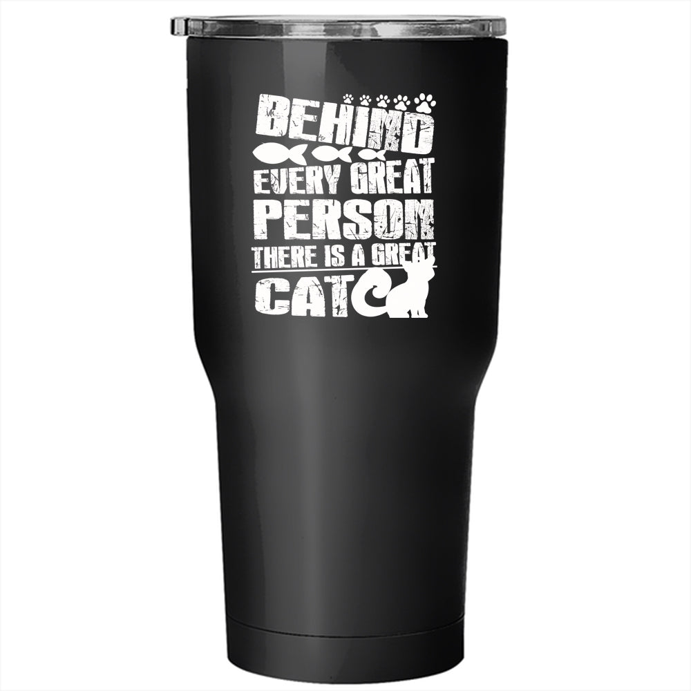 Behind Every Great Person Tumbler 30 oz Stainless Steel, There Is A Great Cat Travel Mug