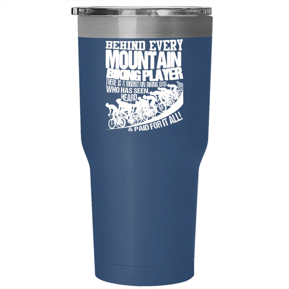 Behind Every Mountain Biking Player Tumbler 30 oz Stainless Steel, There Is A Mountain Biking Dad Travel Mug