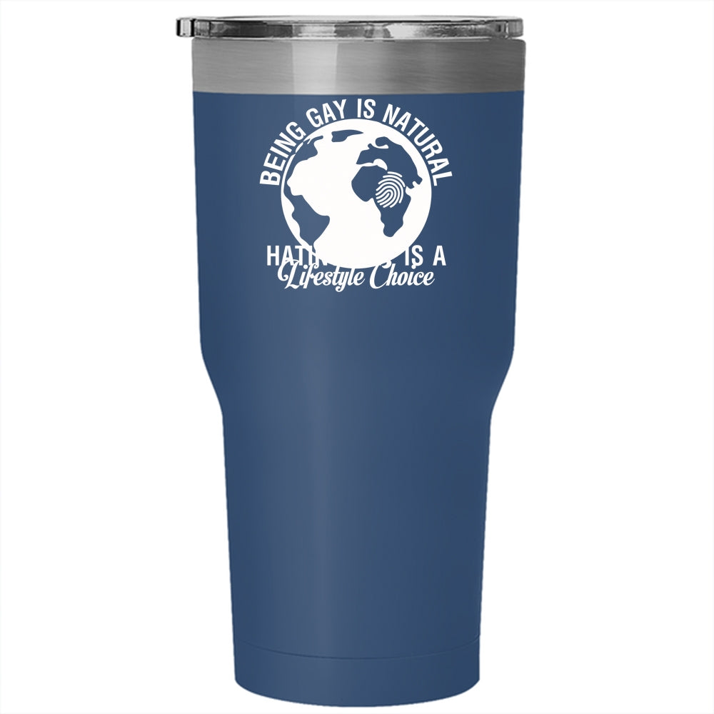 Being Gay Is Natural Tumbler 30 oz Stainless Steel, Hating Gay Is A Lifestyle Choice Travel Mug