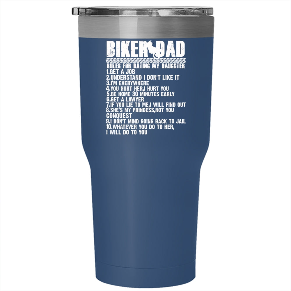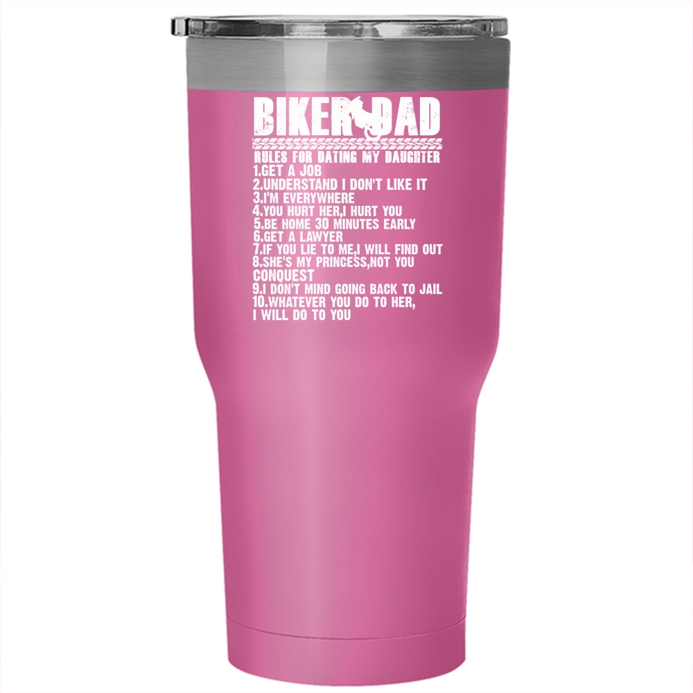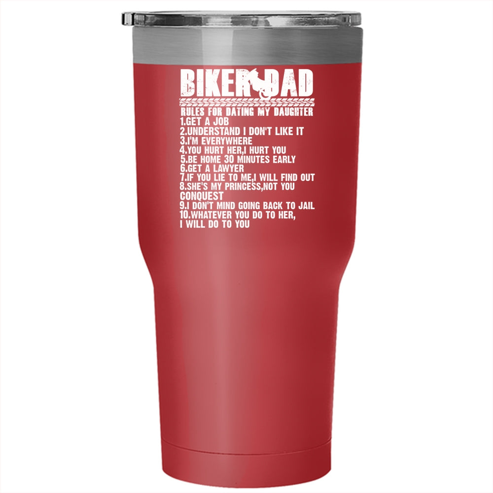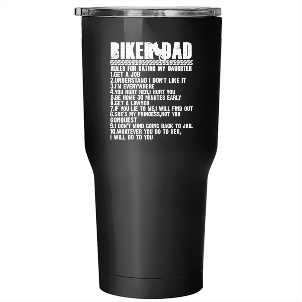 Biker Dad Rules For Dating My Daughter Tumbler 30 oz Stainless Steel, Cool Biker Dad Travel Mug
