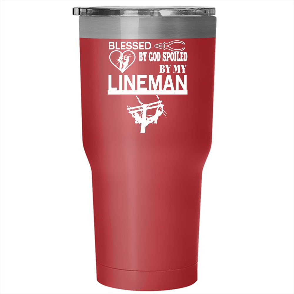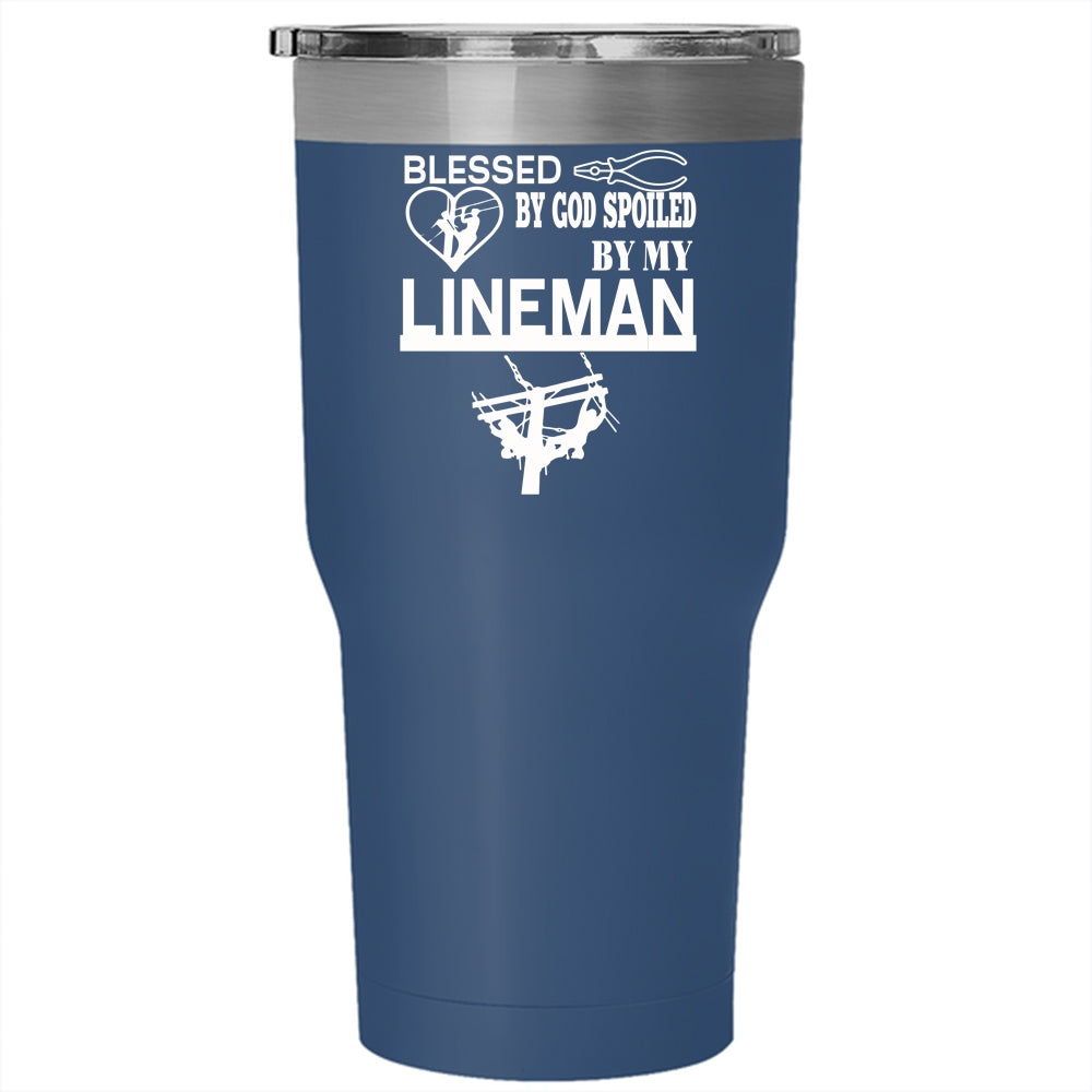 Blessed By God Spoiled By My Lineman Tumbler 30 oz Stainless Steel, Cute Lineman Travel Mug