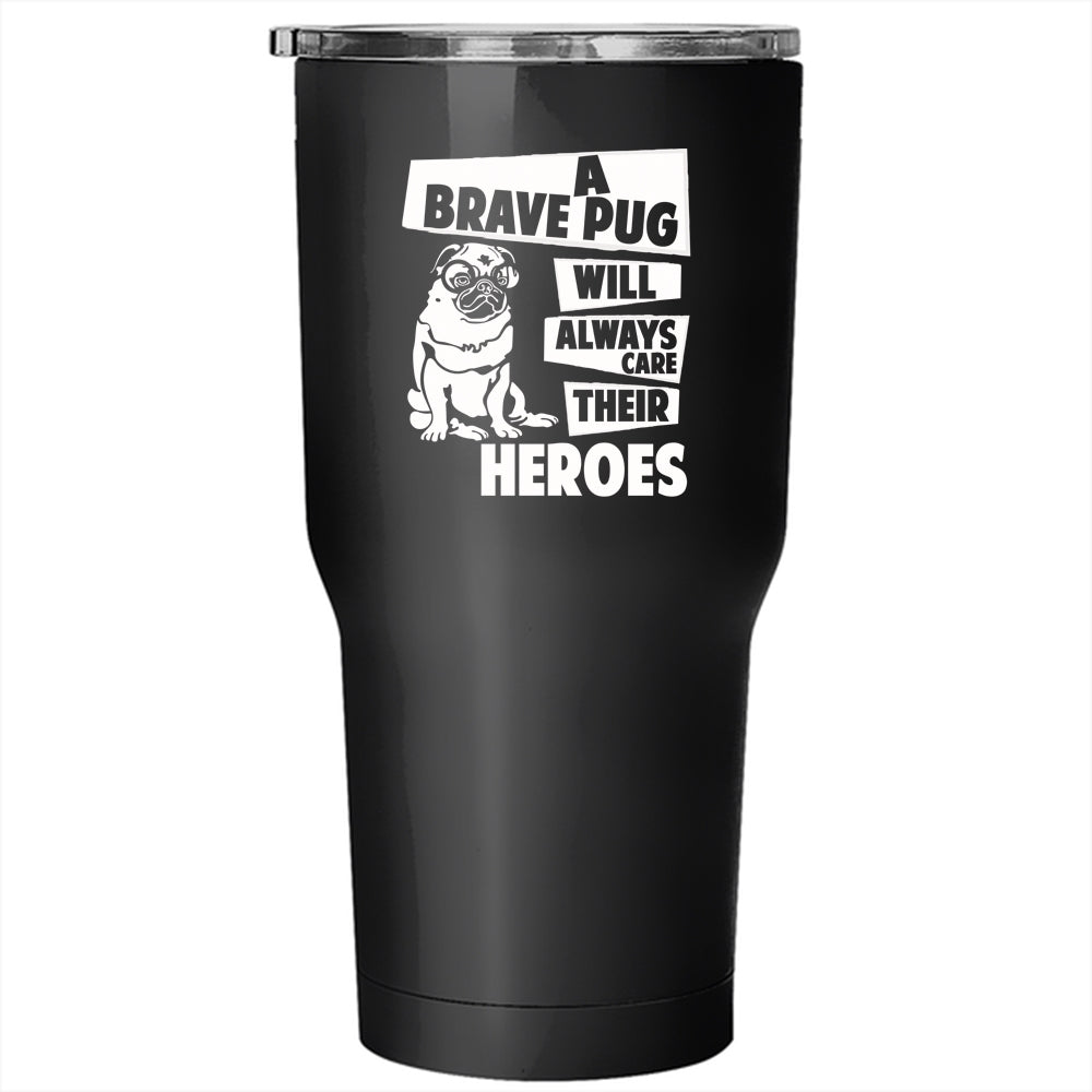 Brave Pug Tumbler 30 oz Stainless Steel, Cool Gift For Pug Lovers Travel Mug