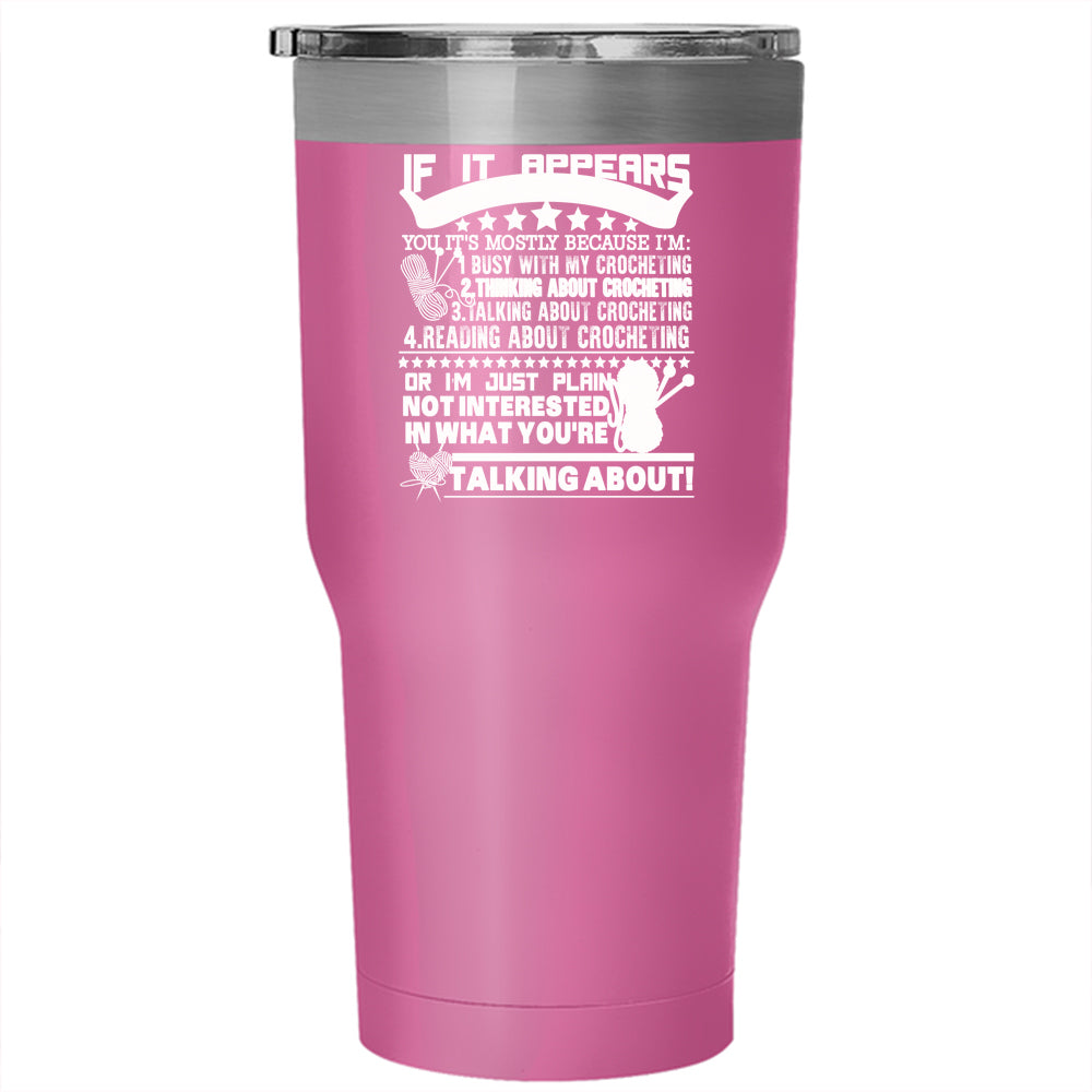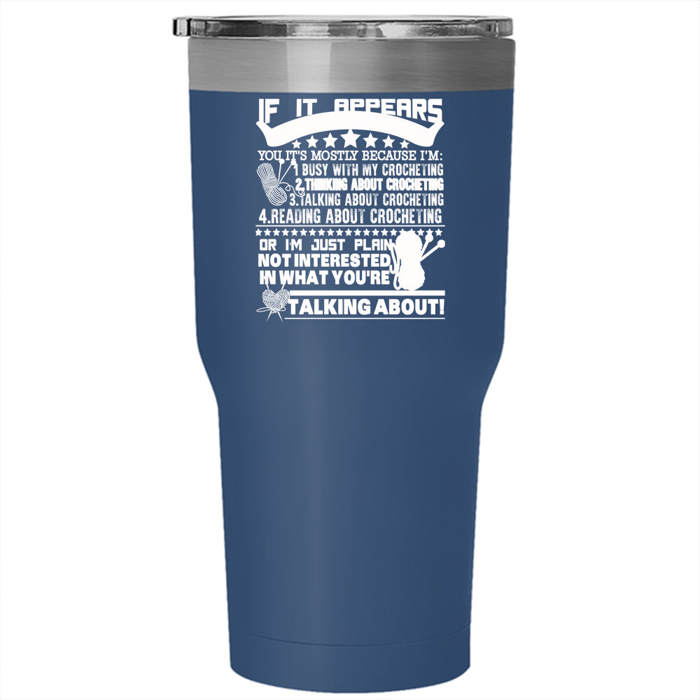 Busy With My Crocheting Tumbler 30 oz Stainless Steel, Reading About Crocheting Travel Mug