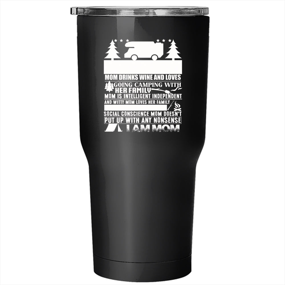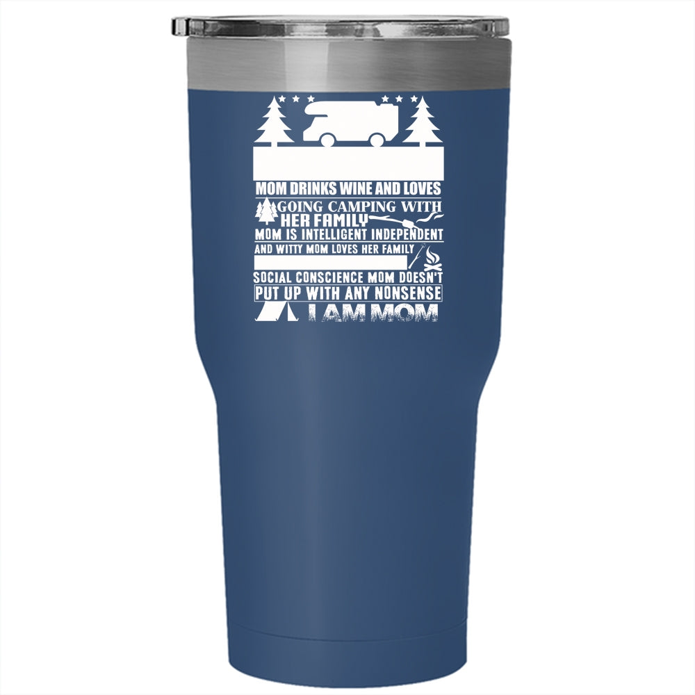 Camping Mom Tumbler 30 oz Stainless Steel, Mom Drinks Wine And Love Camping Travel Mug