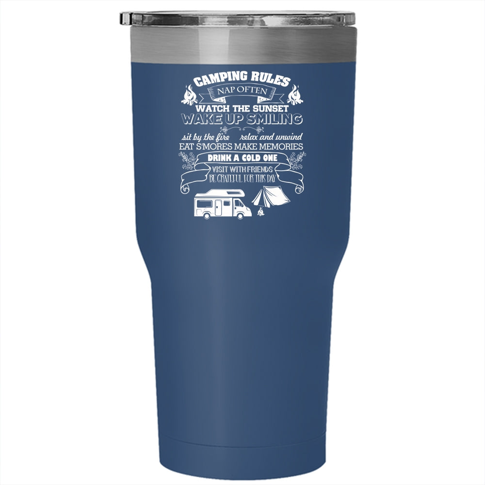 Camping Rules Tumbler 30 oz Stainless Steel, Watch The Sunset Travel Mug