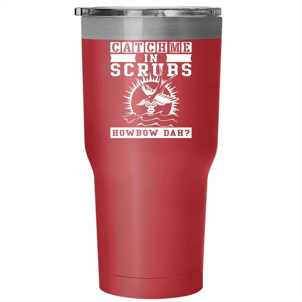 Catch Me In Scrubs Tumbler 30 oz Stainless Steel, Awesome Nurses Travel Mug