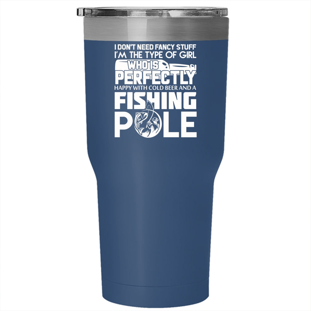 Cool Girls Tumbler 30 oz Stainless Steel, Happy With Cold Beer And A Fishing Pole Travel Mug