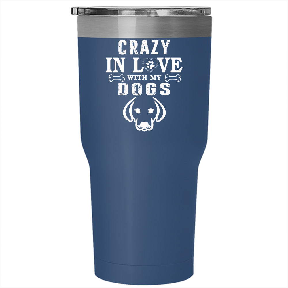 Crazy In Love With My Dogs Tumbler 30 oz Stainless Steel, Gift For Dog Lovers Travel Mug