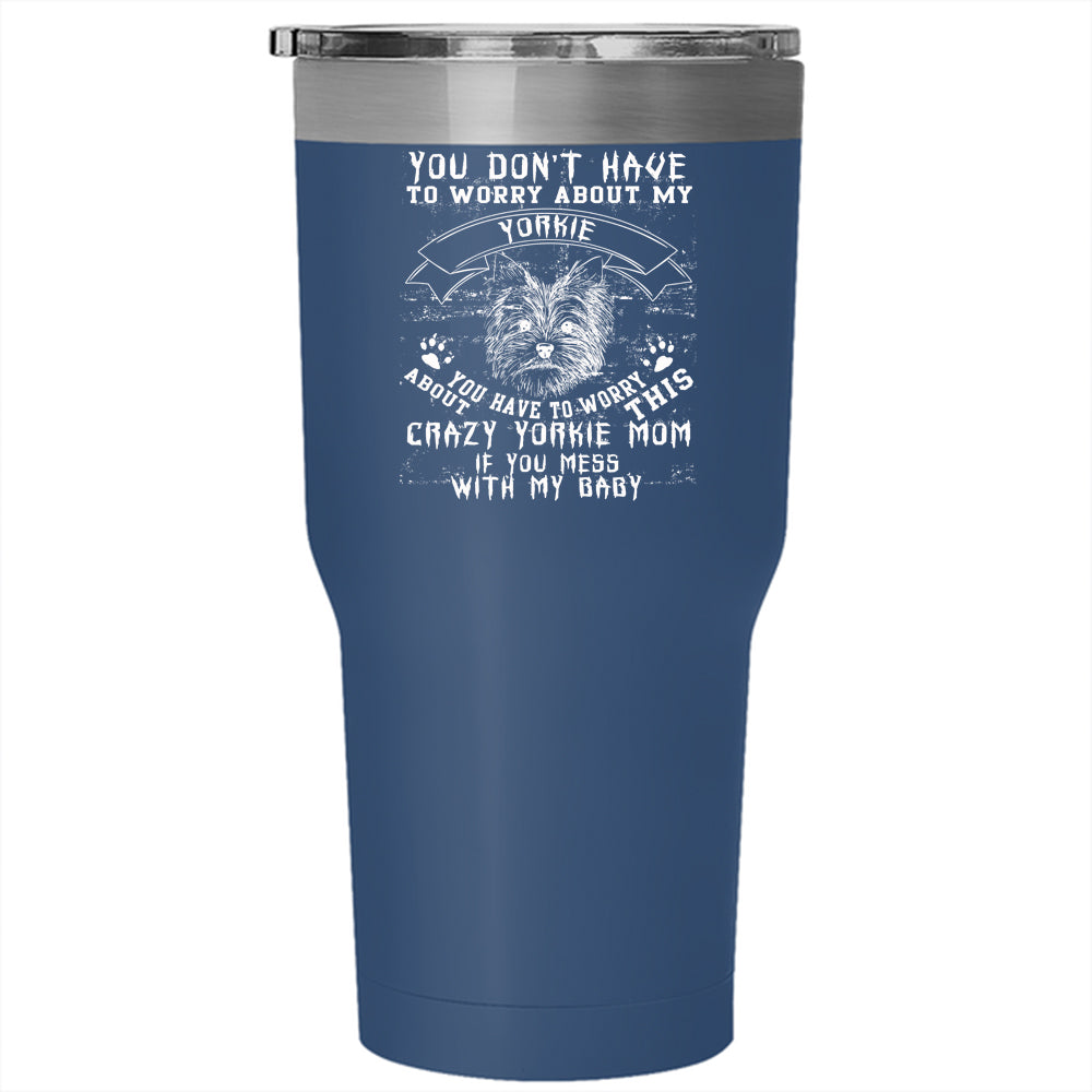 Crazy Yorkie Mom Tumbler 30 oz Stainless Steel, If You Mess With My Baby Travel Mug