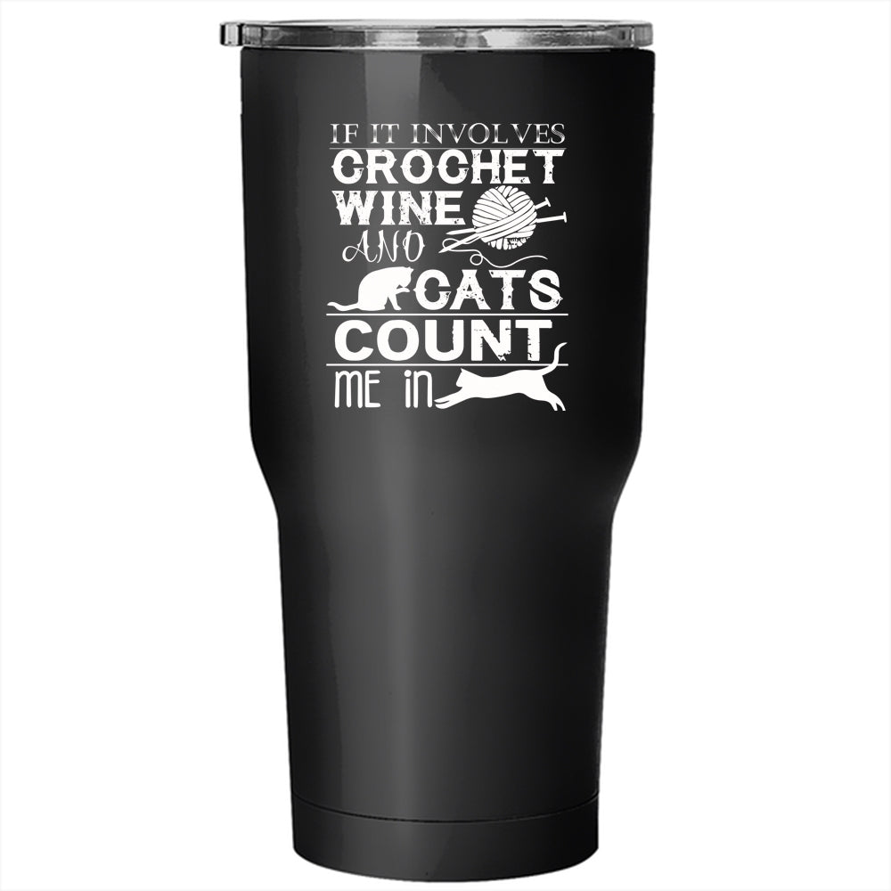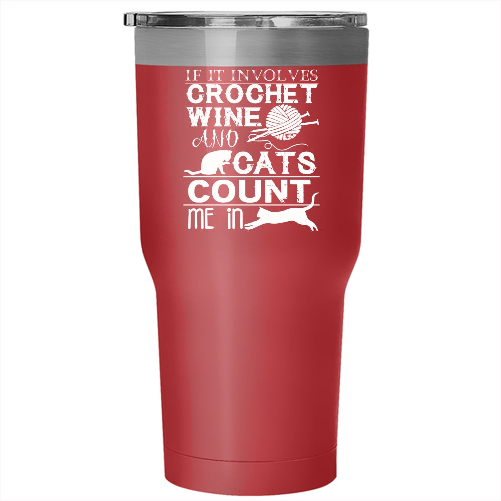 Crochet Wine And Cats Tumbler 30 oz Stainless Steel, Cool Crocheter Travel Mug