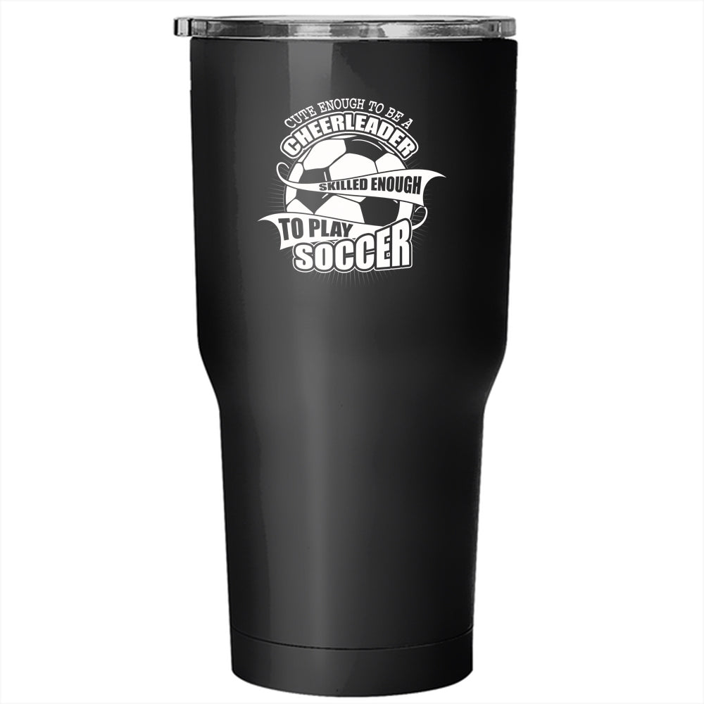 Cute Engough To Be A Cheerleader Tumbler 30 oz Stainless Steel, Play Soccer Travel Mug