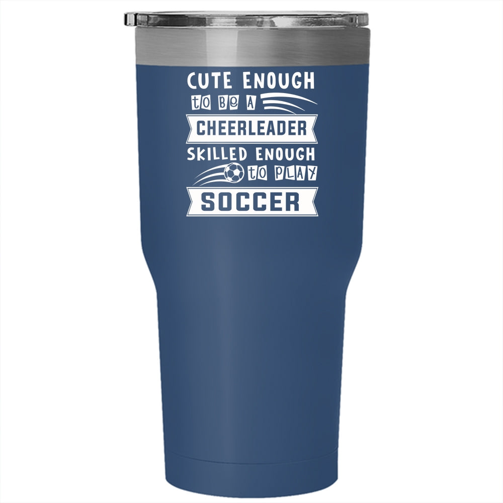 Cute Enough To Be A Cheerleader Tumbler 30 oz Stainless Steel, Skilled Enough To Play Soccer Travel Mug