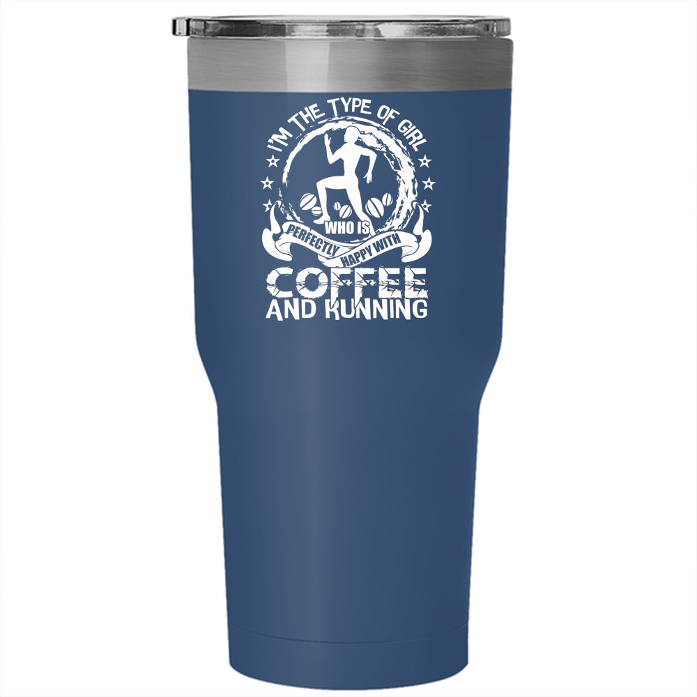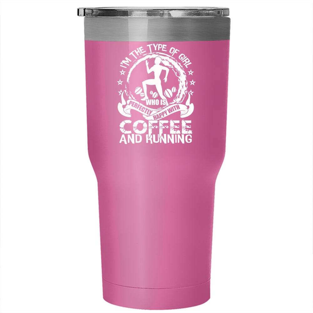Cute Girls Tumbler 30 oz Stainless Steel, Happy With Coffee And Running Travel Mug