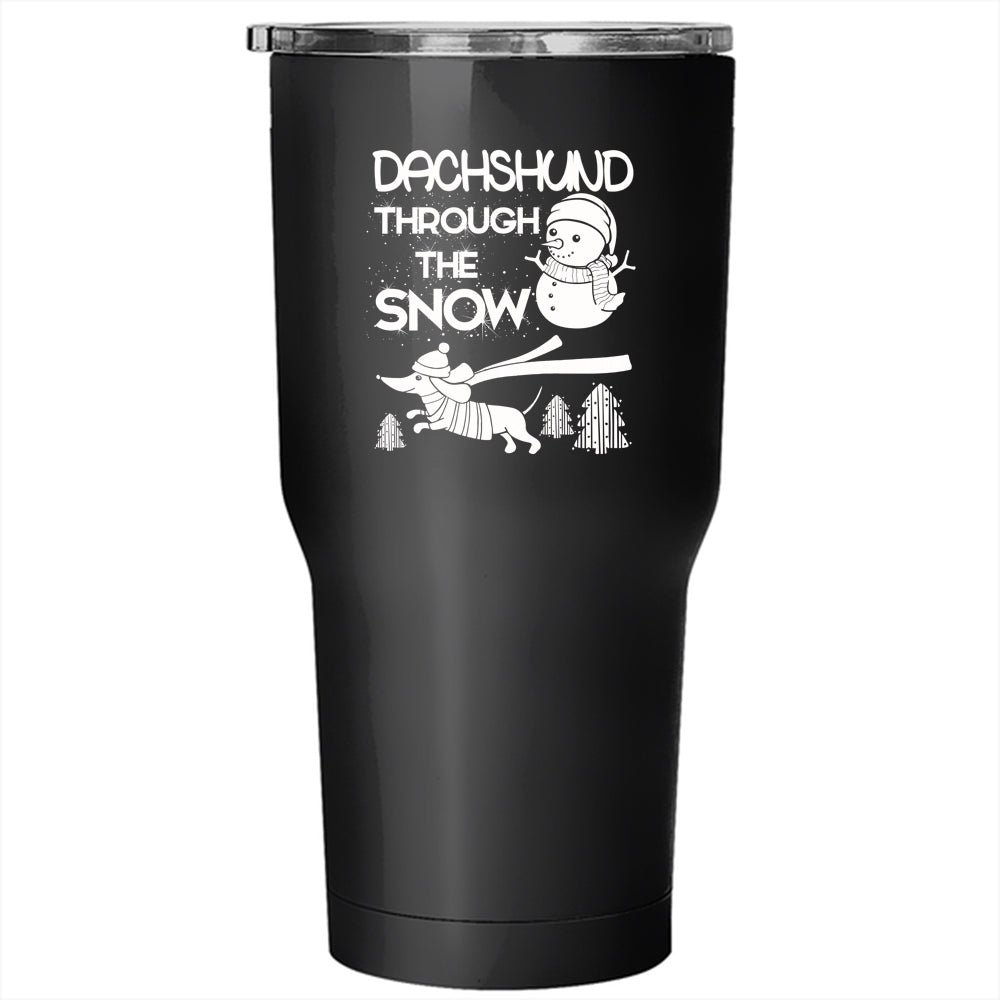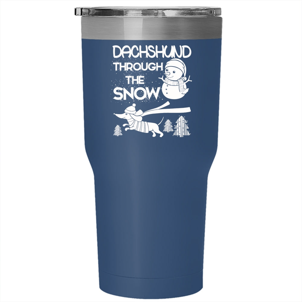 Dachshund Through The Snow Tumbler 30 oz Stainless Steel, Cute Dachshund Travel Mug