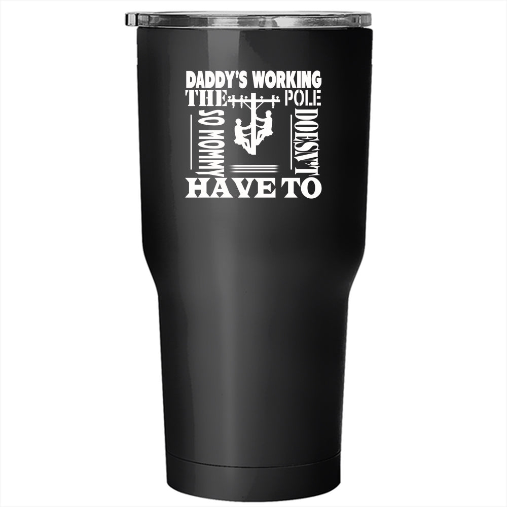Daddy's Working The Pole Tumbler 30 oz Stainless Steel, Awesome Linemen Travel Mug