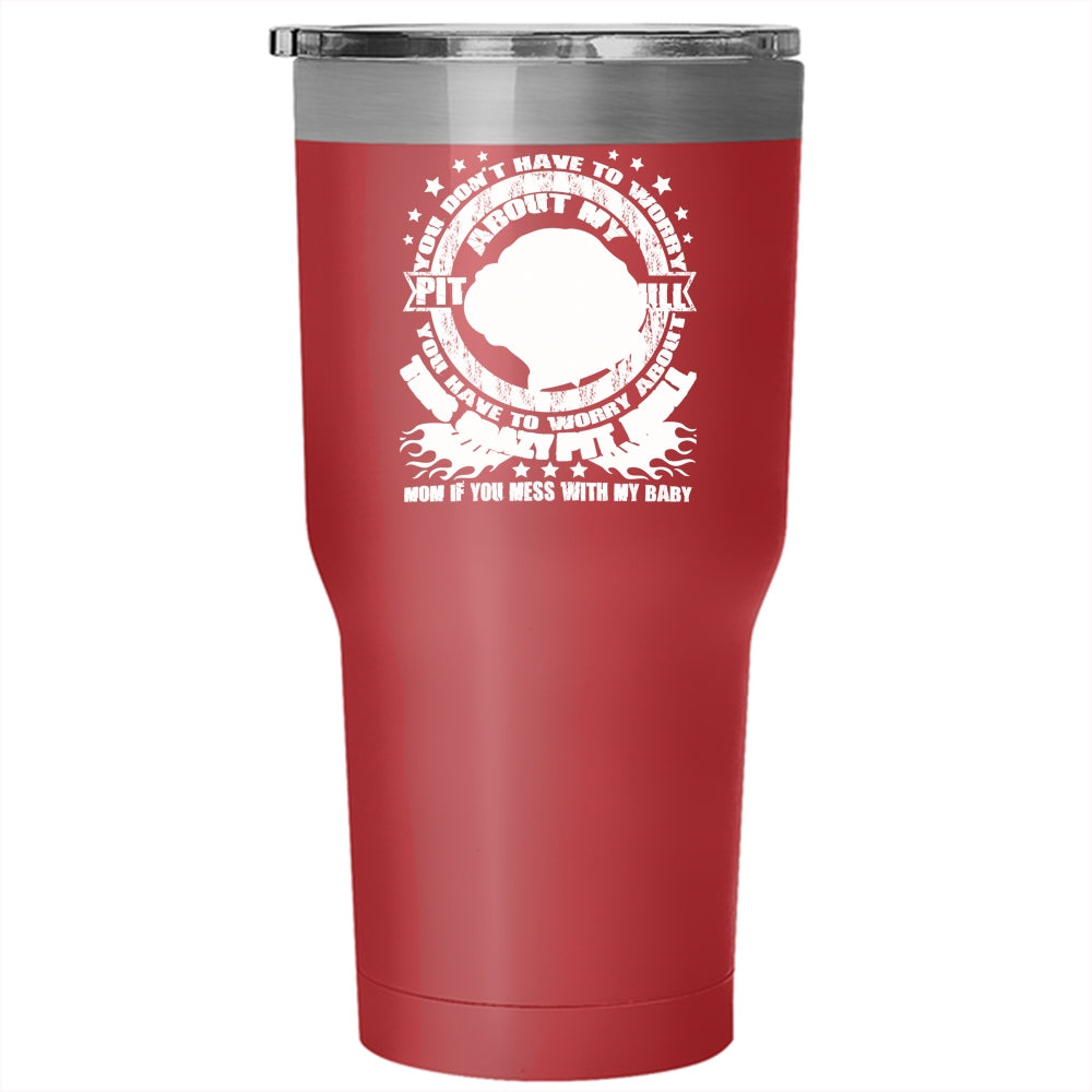 Don't Have To Worry About My Pit Bull Tumbler 30 oz Stainless Steel, Crazy Pitbull Mom Travel Mug