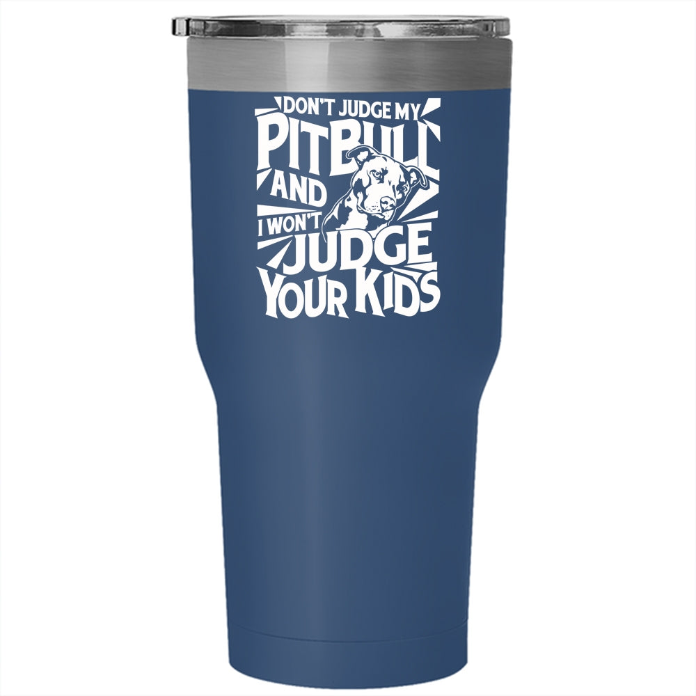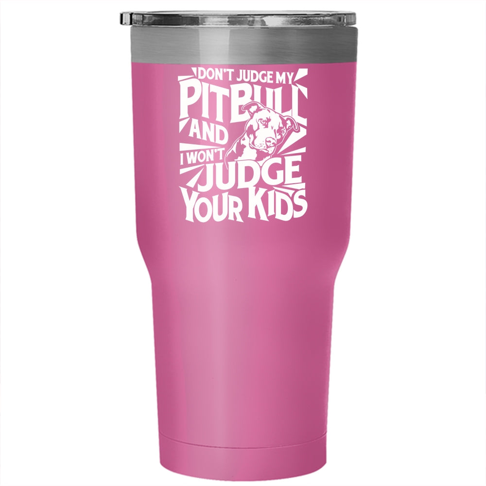 Don't Judge My Pitbull Tumbler 30 oz Stainless Steel, I Won't Judge Your Kids Travel Mug