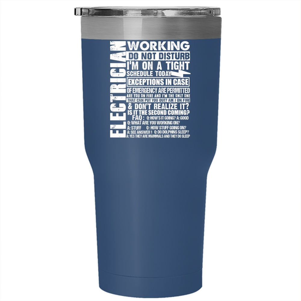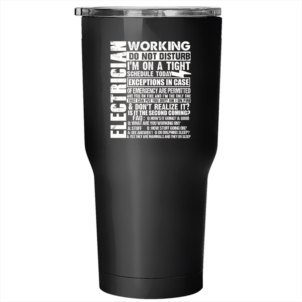 Electrician Working Do Not Disturb Tumbler 30 oz Stainless Steel, Cool Electricians Travel Mug