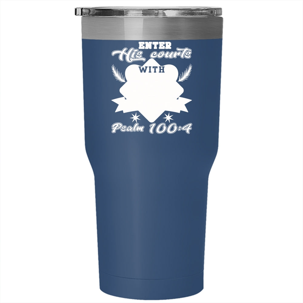 Enter His Courts With Praise Tumbler 30 oz Stainless Steel, Funny Tennis Travel Mug